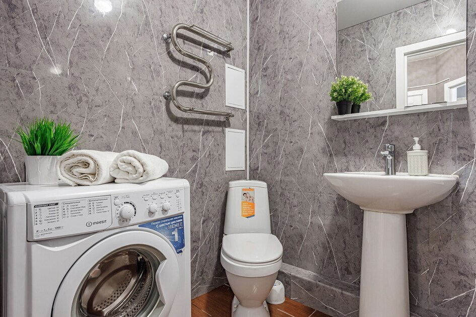 - комфортный санузел с ванной, стиральной машиной, туалетными принадлежностями и феном;