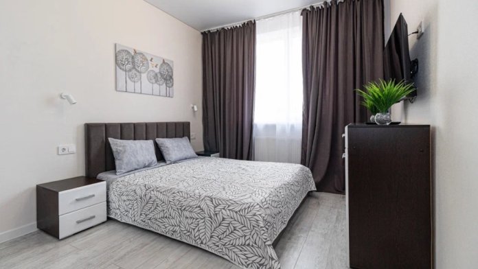 Уютная домашняя обстановка, полностью оборудованные кухня, ванная и спальня.