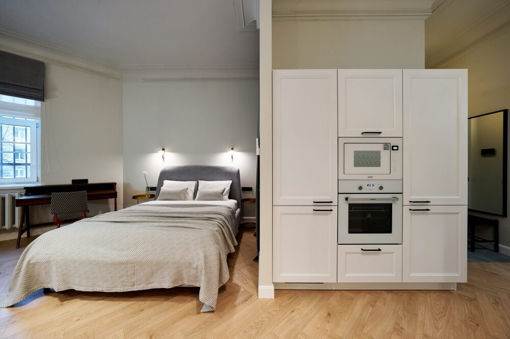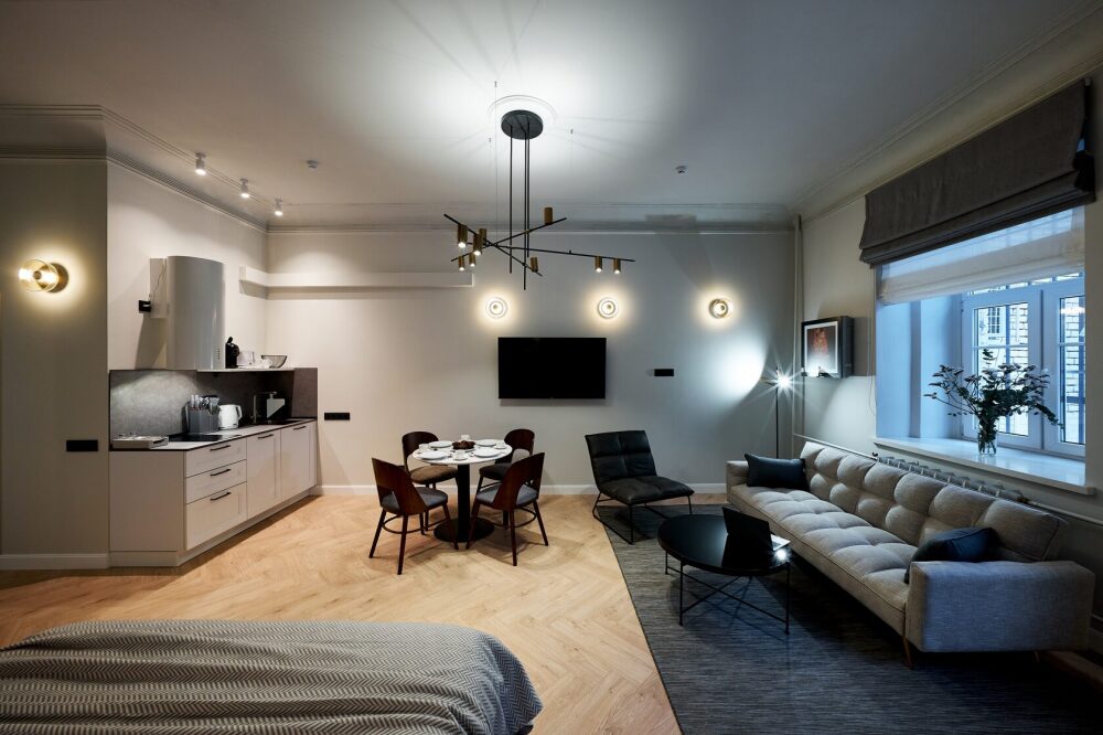 Просторная квартира прекрасно подходит для проживания троих гостей: