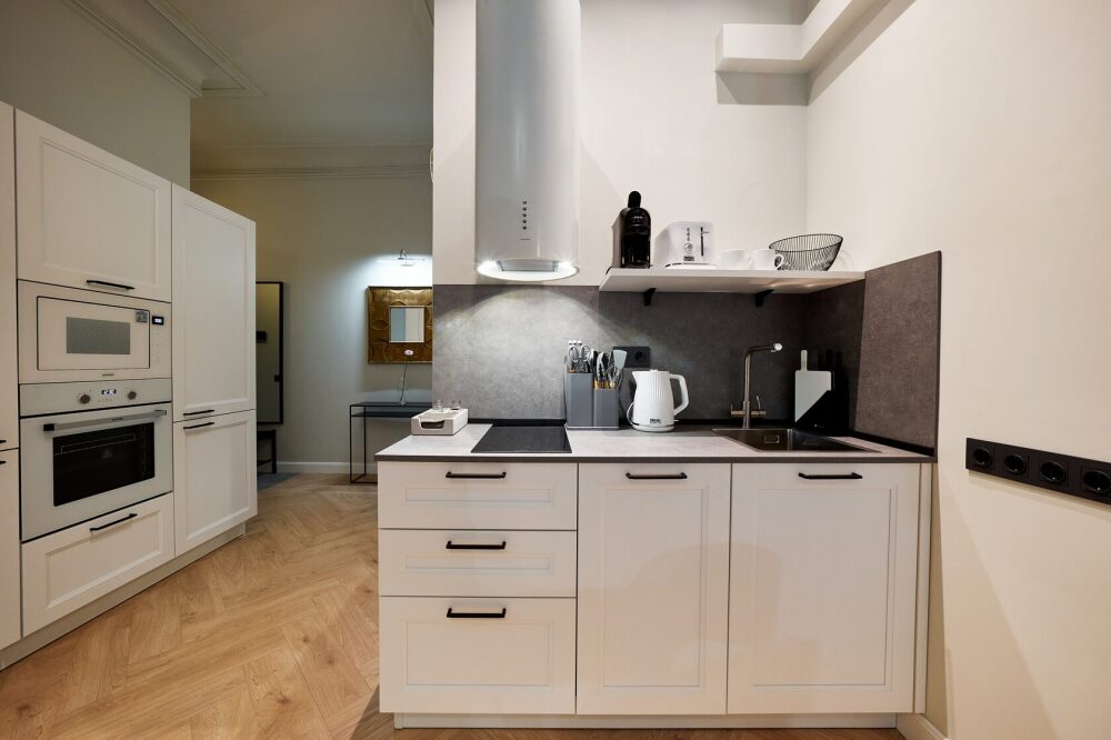 - Полностью оснащенная кухня (посудомоечная машина, духовой шкаф, СВЧ печь, варочная панель);