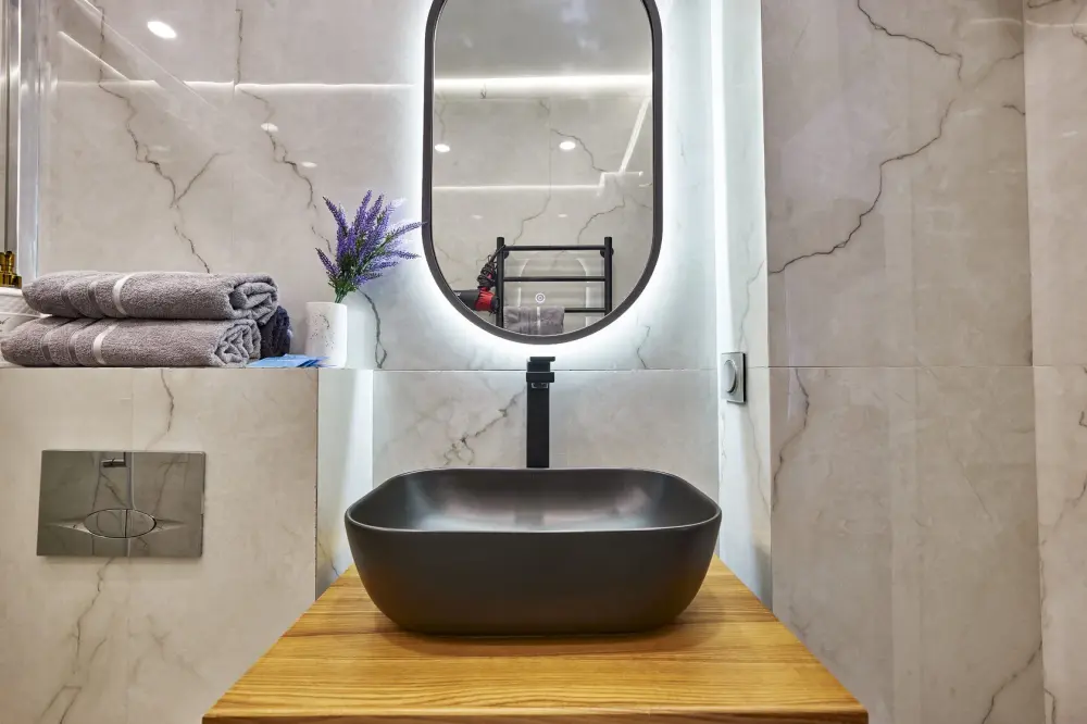 Интерьер выполнен в современном стиле, что создает атмосферу уюта и спокойствия.