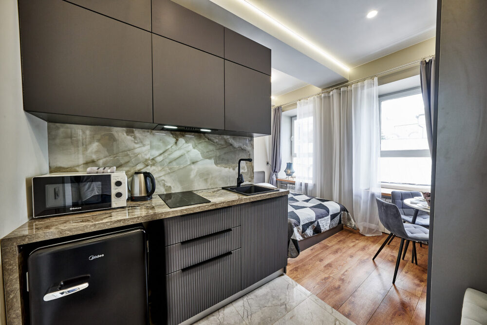 - полностью оборудованная мини-кухня;