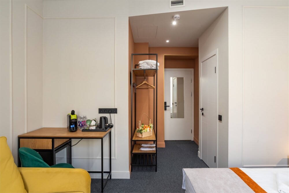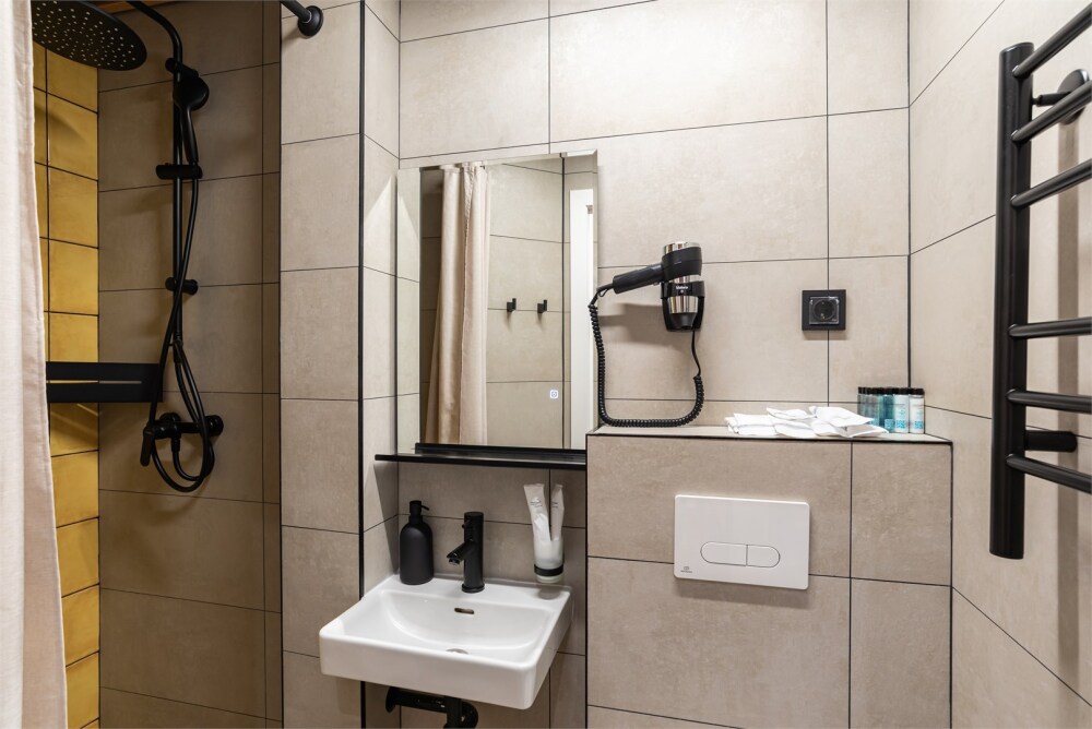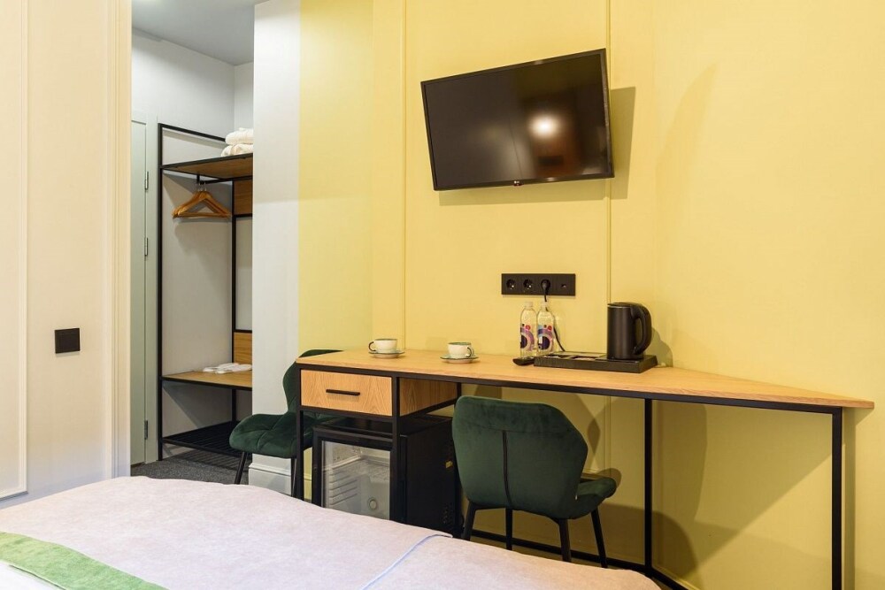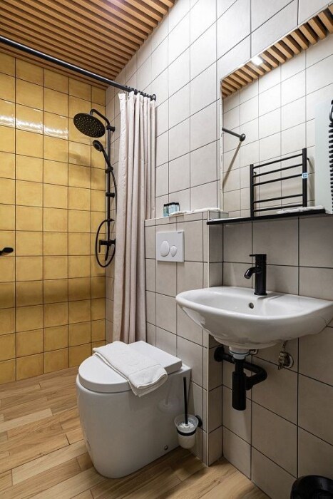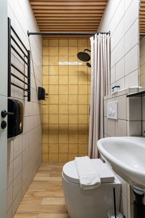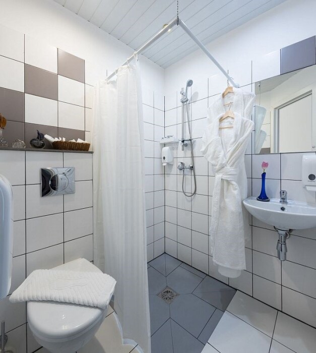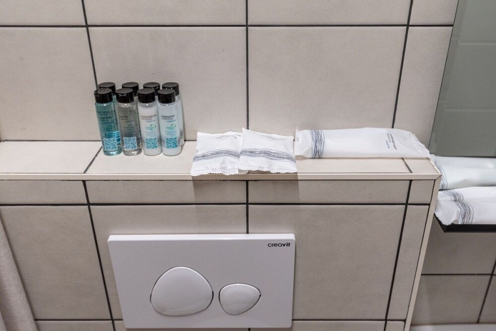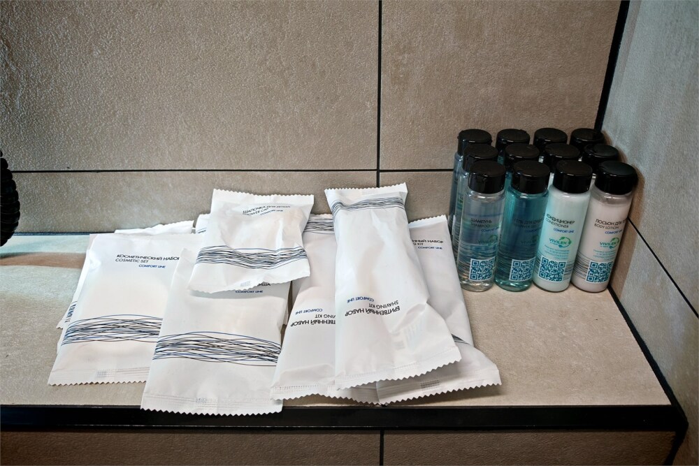 Комфорт в комнате: матрас здорового сна, постельное бельё и полотенца, индивидуальный санузел с душем и умная колонка «Алиса». Предоставляется белоснежное белье, полотенца, халаты, тапочки, все все туалетные принадлежности: гель, шампунь, лосьон, шапочки для душа, пилочка, спонж, бритва, крем, щетка зубная с пастой, фен.
