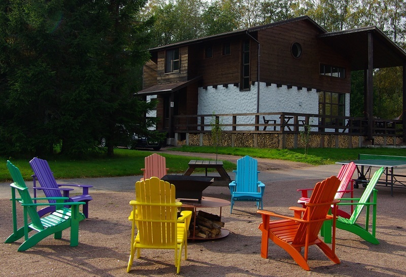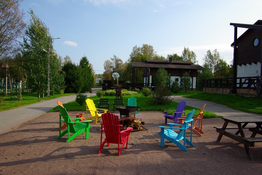 У нас есть 2 костровые поляны - на берегу озера и прямо посреди базы. Мы предлагаем нашим гостям собраться своей компанией вокруг костра на специально оборудованной площадке, где есть костровое место с удобными креслами, массивные деревянные столы с лавками (вместимостью до 40 человек), мангал в виде оленя и вечернее освещение.