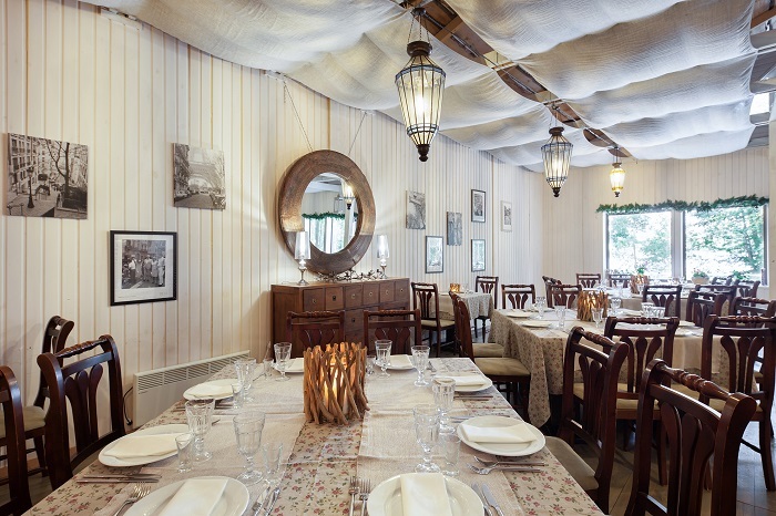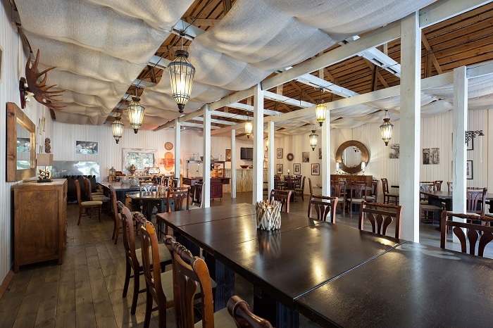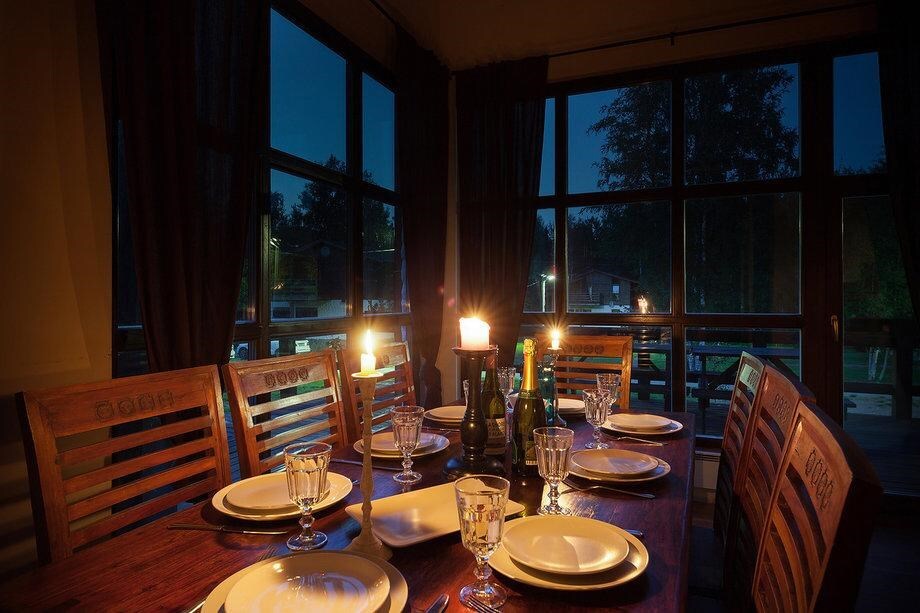 Загородный ресторан нашего комплекса - это уютный зал в стиле «Прованс» площадью 140м2 и вместимостью до 80 человек, а также летняя, крытая веранда площадью 260м2 с панорамным видом на озеро, вмещающая до 100 гостей. Он идеально подходит для проведения торжественных и корпоративных мероприятий. Обслуживают гостей квалифицированные повара и официанты, работающие в известных ресторанах Санкт-Петербурга. Свяжитесь с нашим шеф-поваром (или он с Вами свяжется), чтобы согласовать меню по Вашему вкусу. Мы можем приготовить блюда русской, итальянской и европейской кухни.