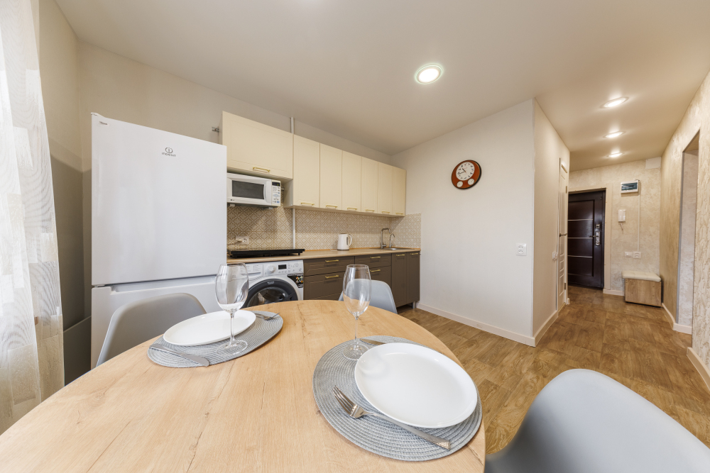 На всех наших объектах есть всё самое необходимое: фен, утюг, стиральная машина, чайник, микроволновка, плита, холодильник, столовые приборы и базовая посуда, чай и кофе.