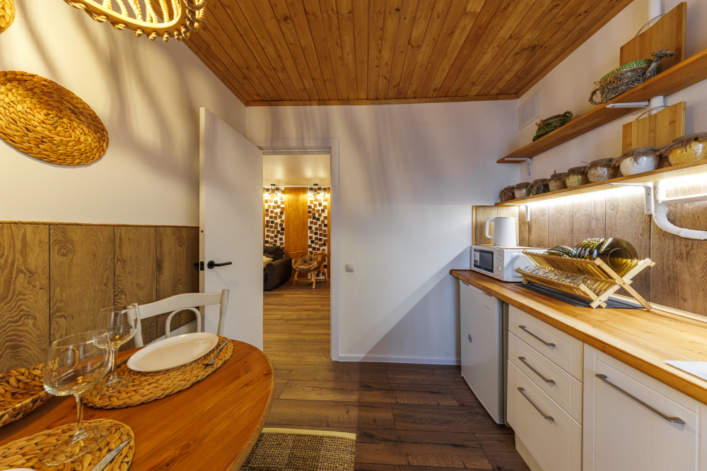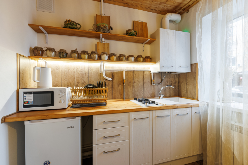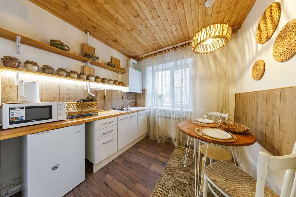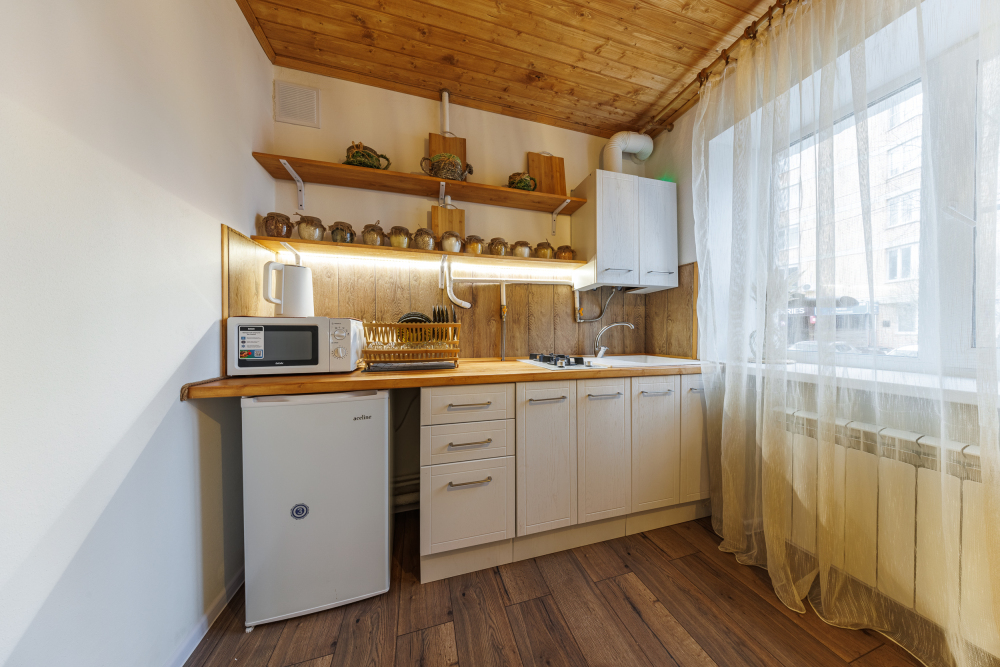 На всех наших объектах есть всё самое необходимое: фен, утюг, стиральная машина, чайник, микроволновка, плита, холодильник, столовые приборы и базовая посуда, чай и кофе.