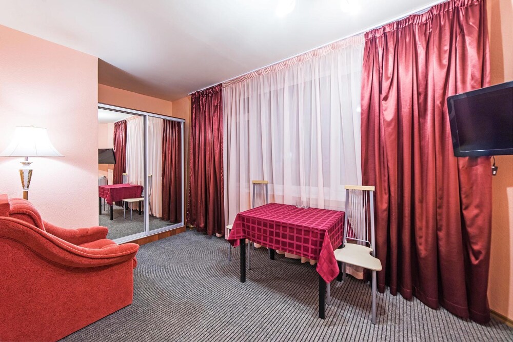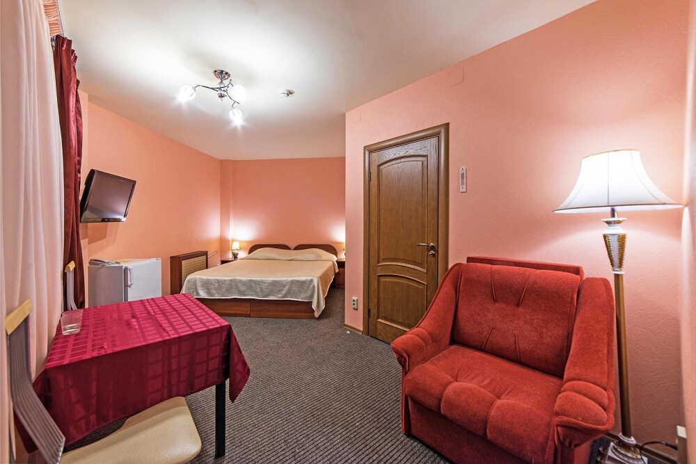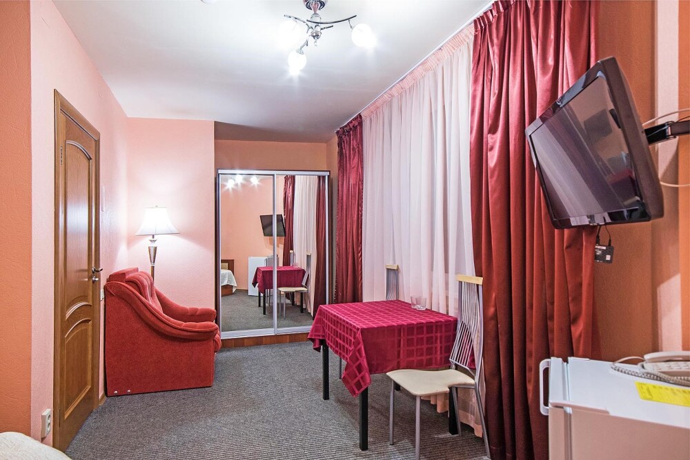 В каждом номере: холодильник, телевизор, телефон, удобства, ванна. Посетителей отеля ждет приятная обстановка и достойный сервис.