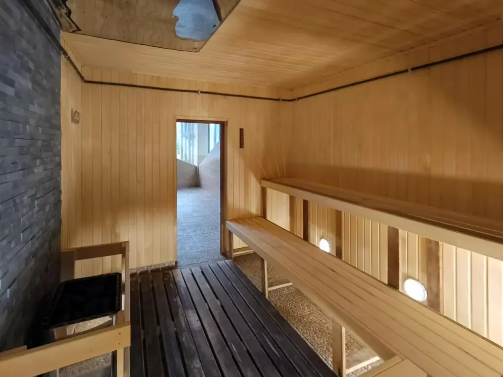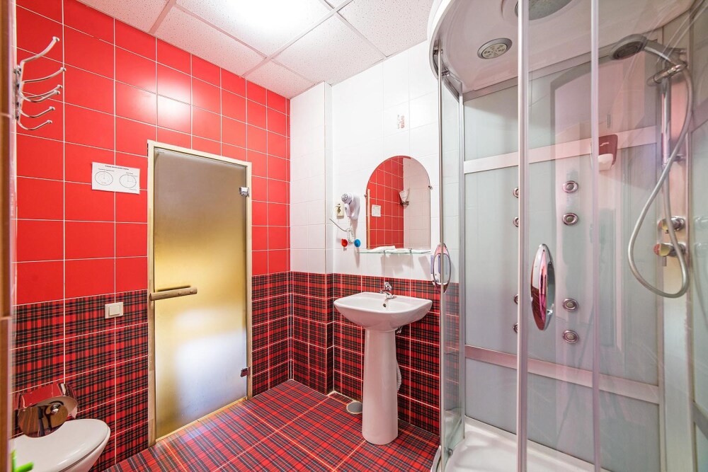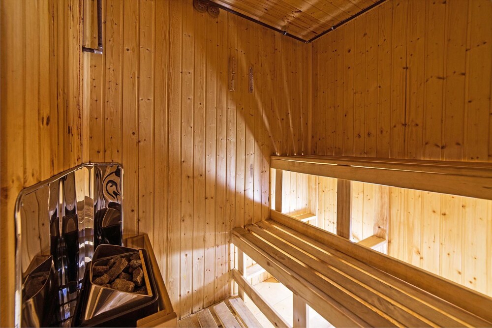 Удобства: санузел, финская сауна, душевая с гидромассажем, фен, комплект полотенец, халаты, тапочки.