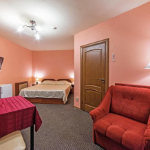 Комфортный номер, состоящий из спальной комнаты с одной двуспальной кроватью и одним раскладным креслом либо диваном, небольшого холла и санузла.