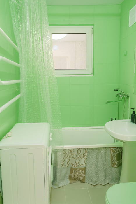 * Совмещённый санузел с полноценной ванной, стиральная машина, средства гигиены