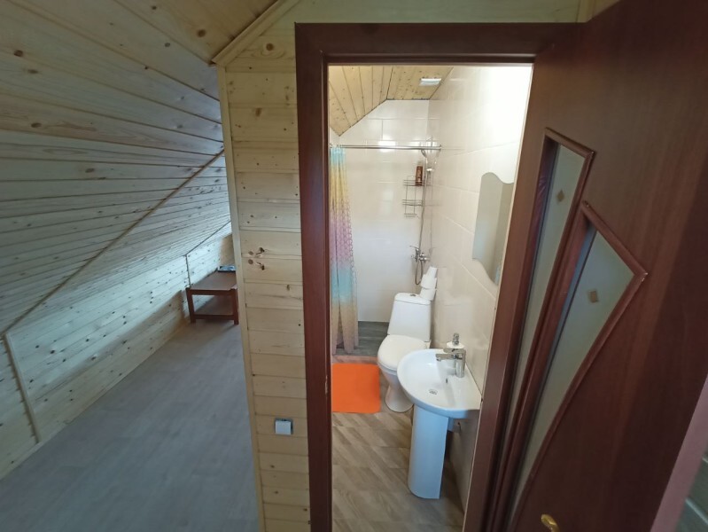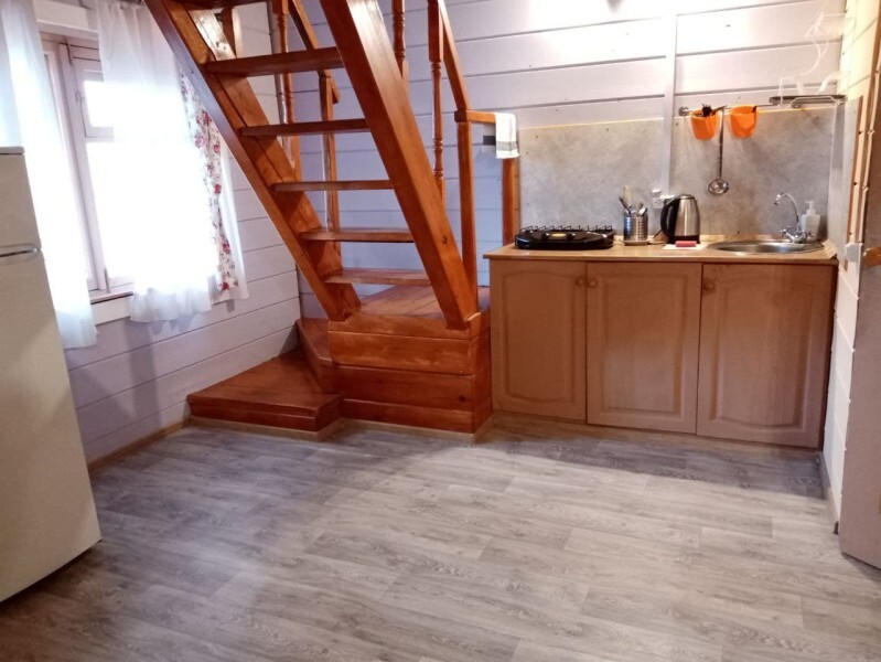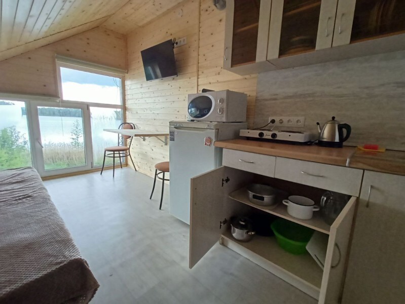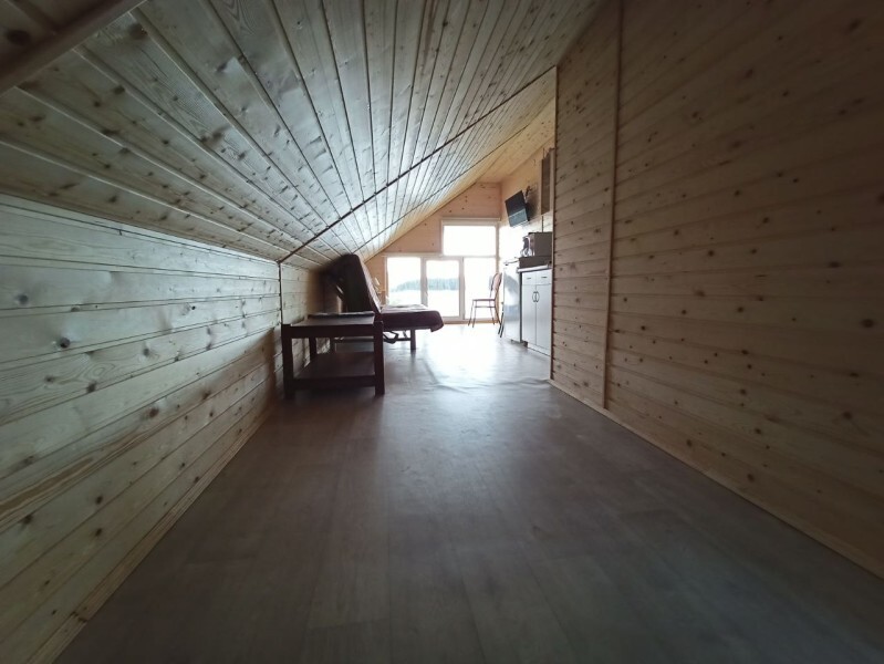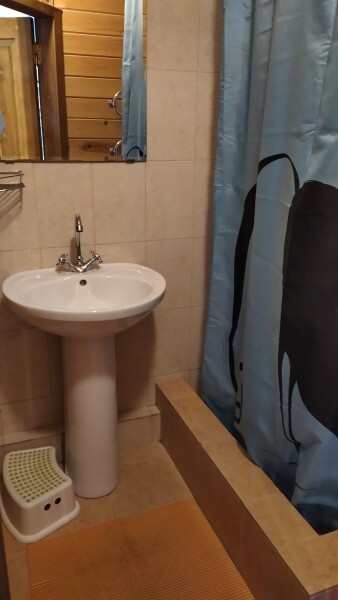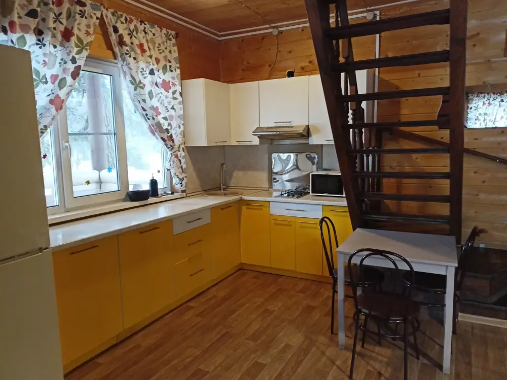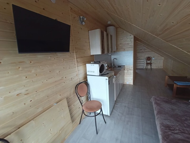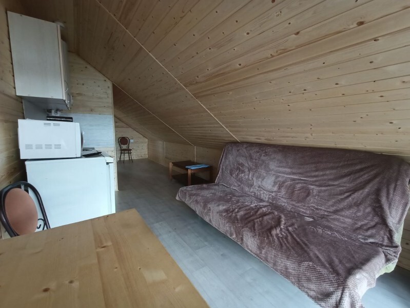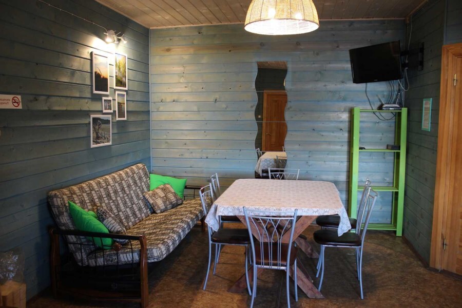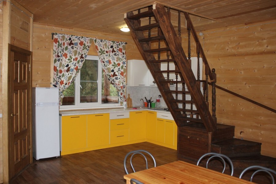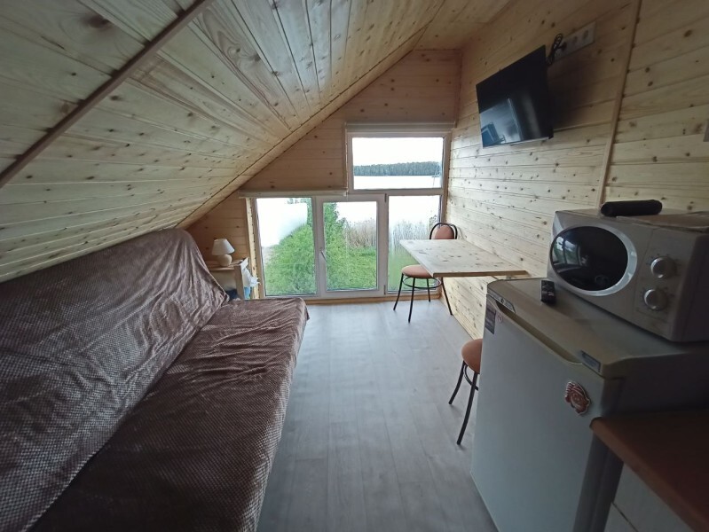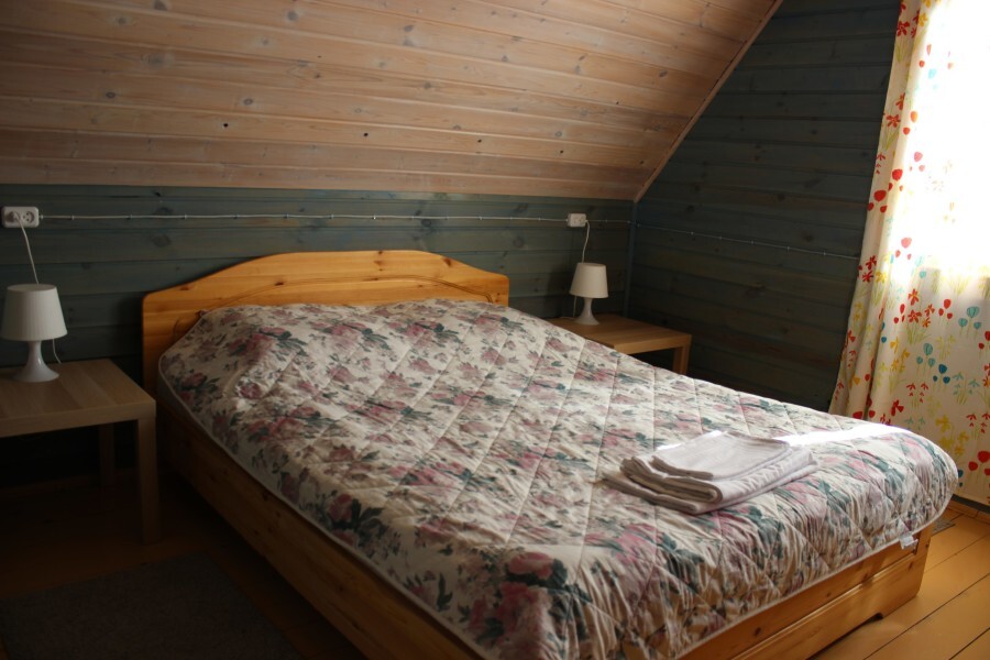 - Гостиная камин, кухня (плита, холодильник, раковина, полный комплект посуды), стол на 6 человек, телевизор, двуспальный раскладной диван, конвектор.