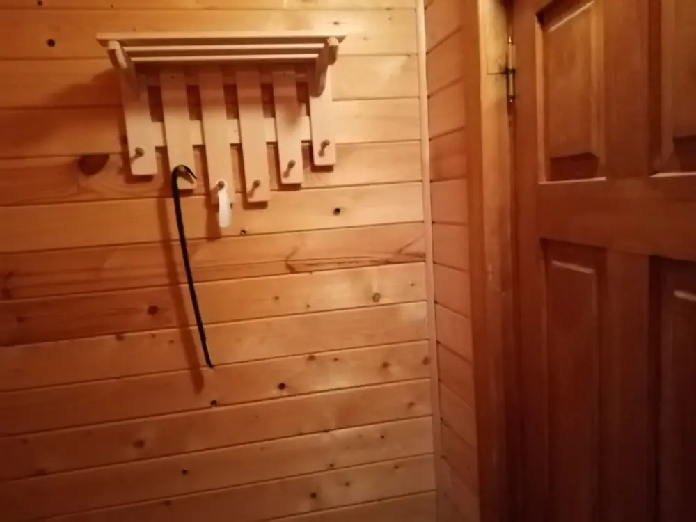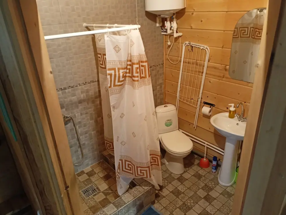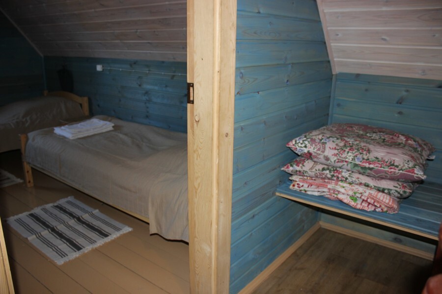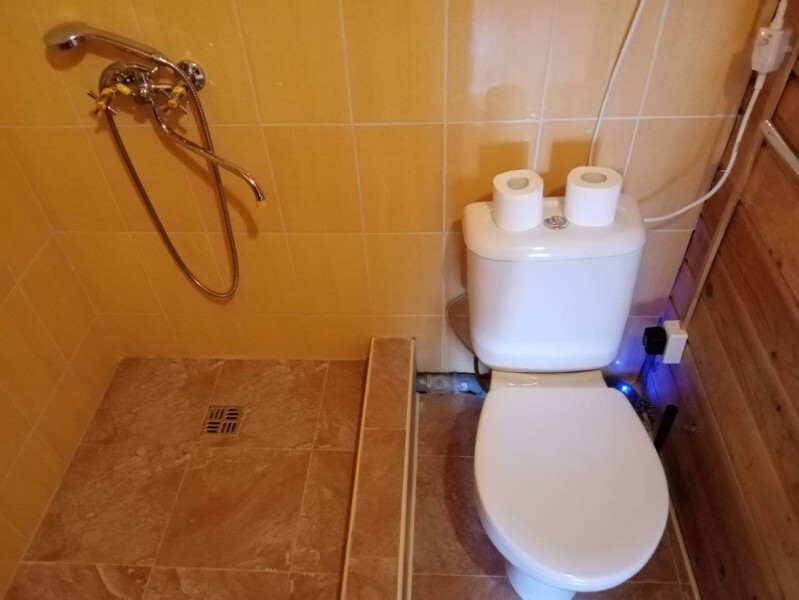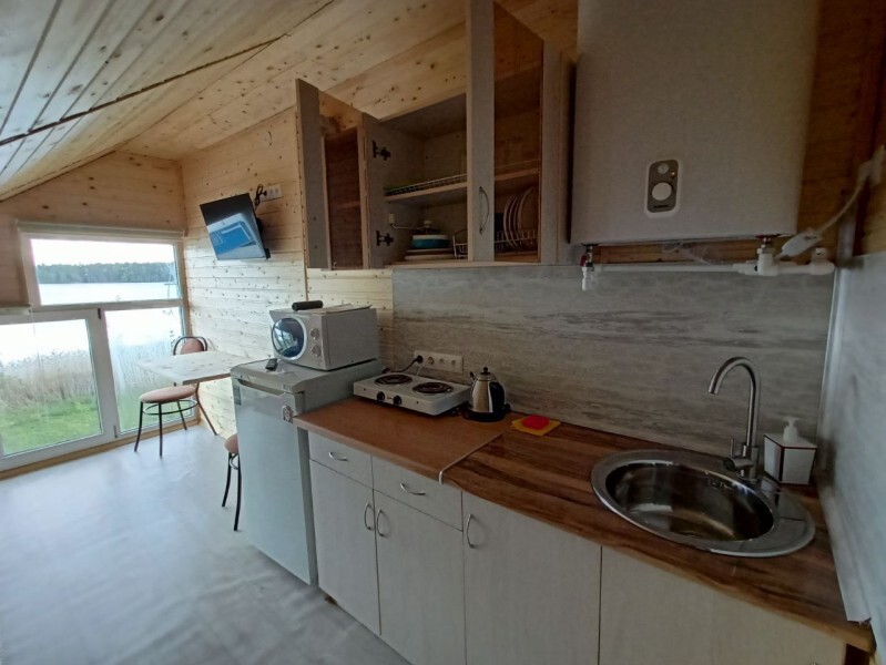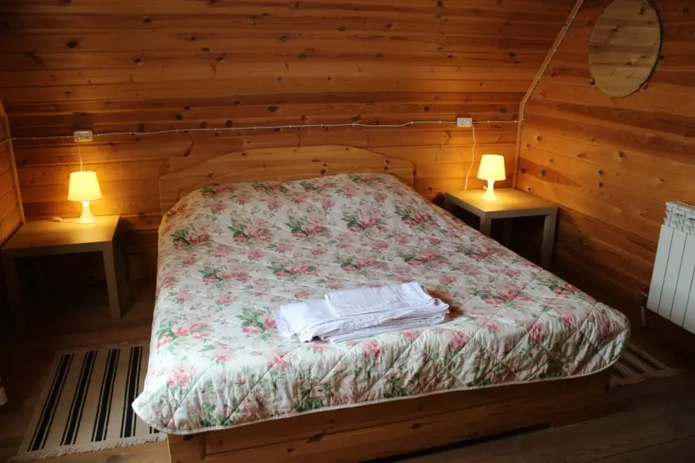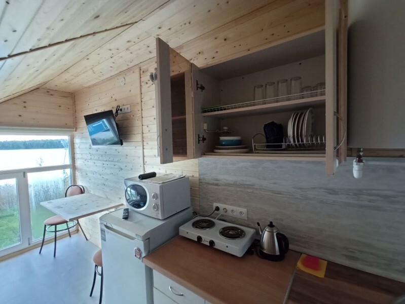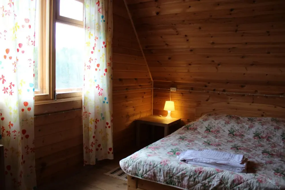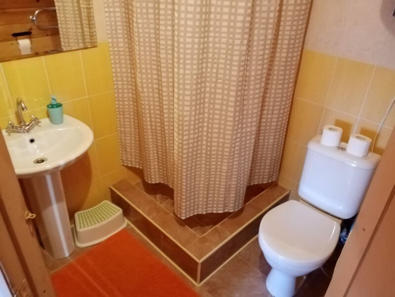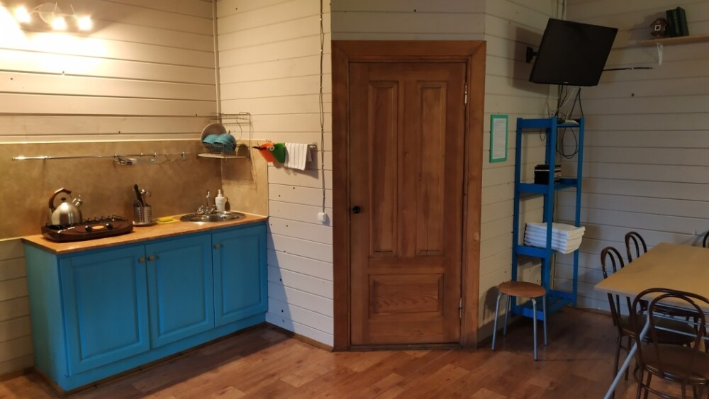 - Гостиная камин, кухня (плита, холодильник, раковина, полный комплект посуды), стол на 6 человек, телевизор, двуспальный раскладной диван, конвектор.