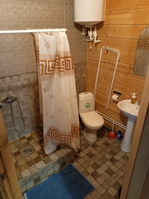 - Санузел: душевая кабина, раковина, унитаз, полотенцесушитель, сушилка, корзина для грязного белья, стул для детей.