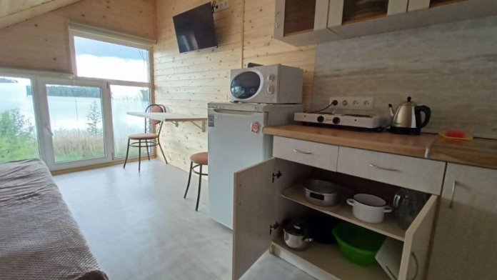 Представьте как это здорово пожить в домике на берегу озера, провести время на просторной террасе коттеджа, посидеть у камина со всей семьей, показать, наконец, детям, что такое рыбалка, а вечером развести мангал у своего дома. В каждом большом доме Вас будет ждать просторная гостиная, совмещенная с кухней.