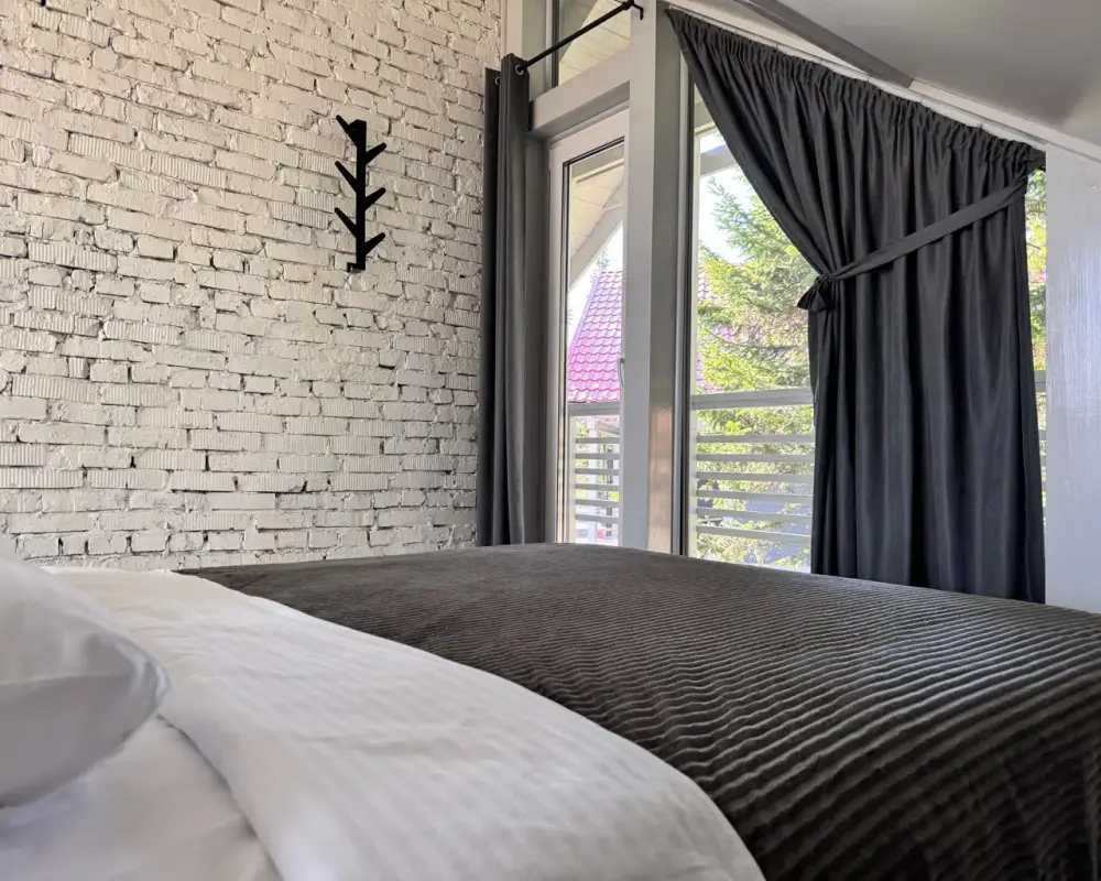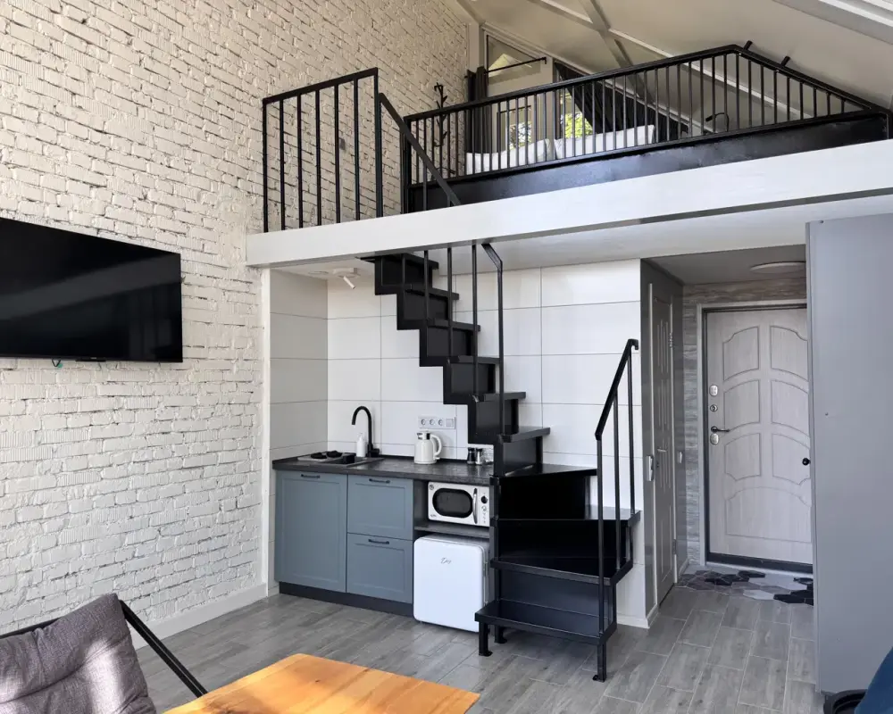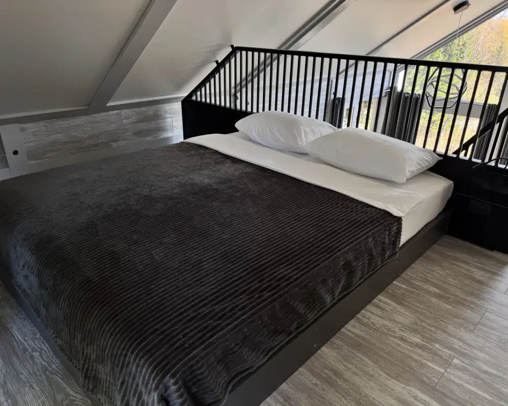 Спальные места: двуспальная кровать, раскладной диван (комфорт+).