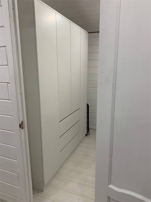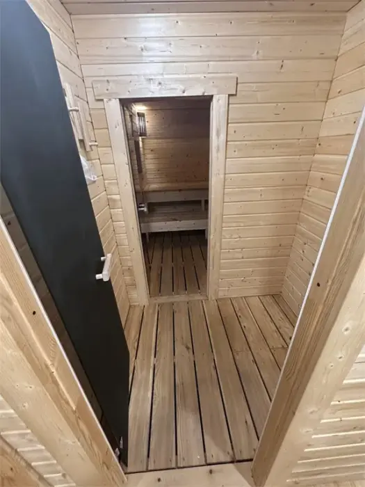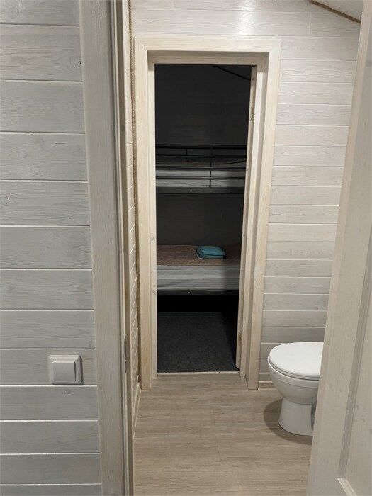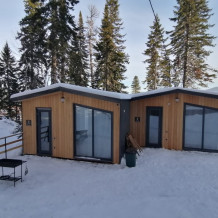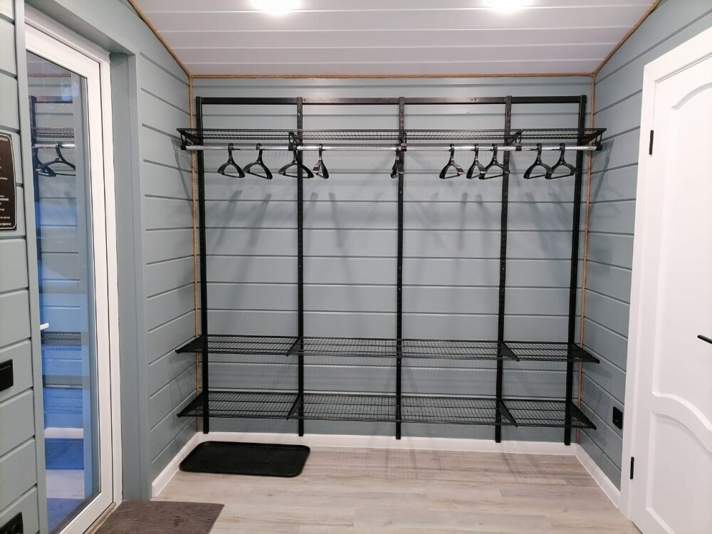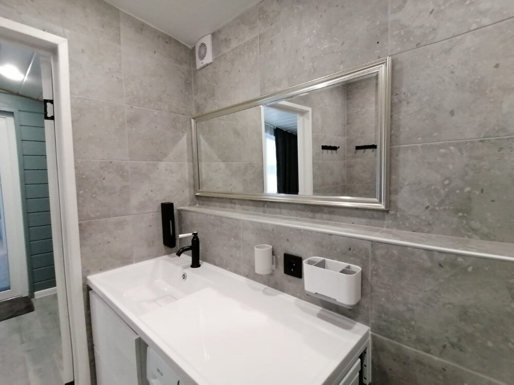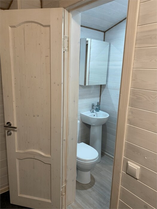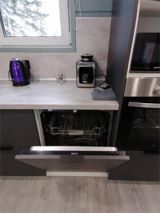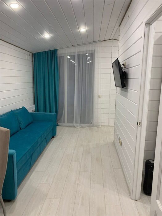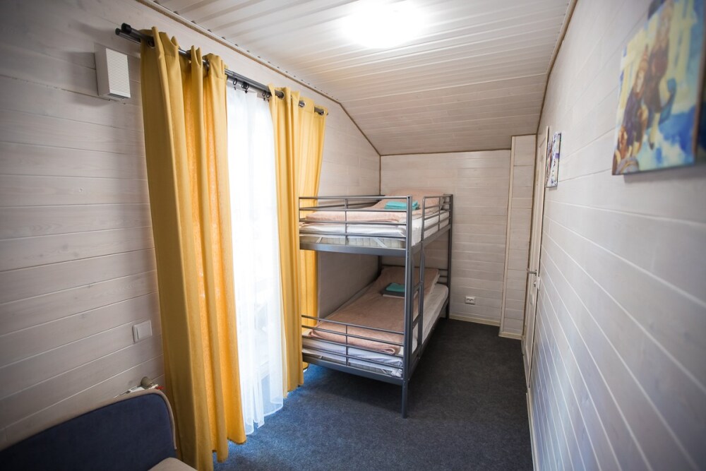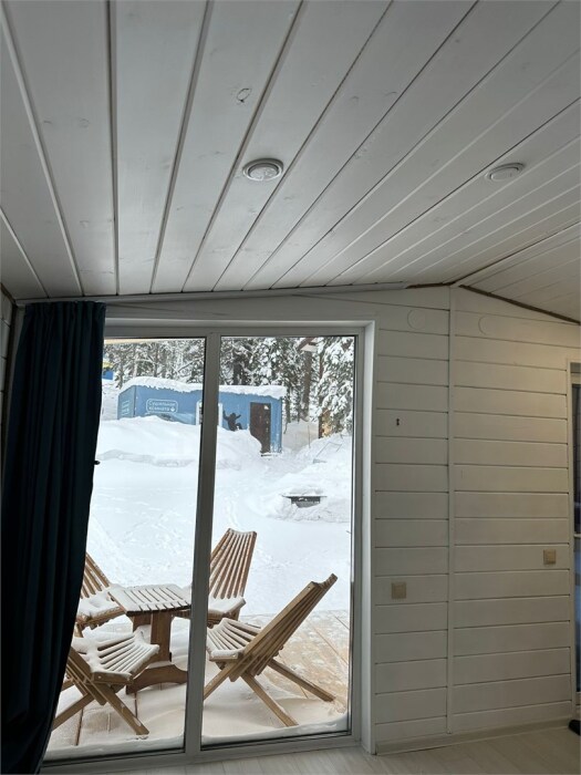 В доме 4 спальных места, прихожая, гостиная-столовая, изолированная спальня с двуспальной кроватью и панорамным окном.