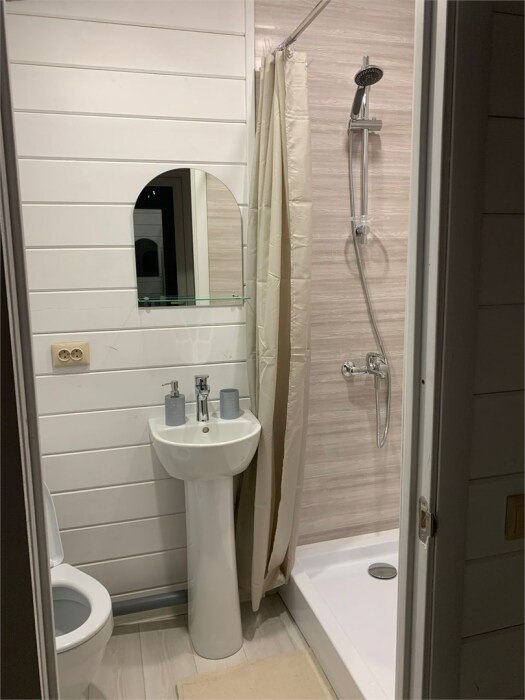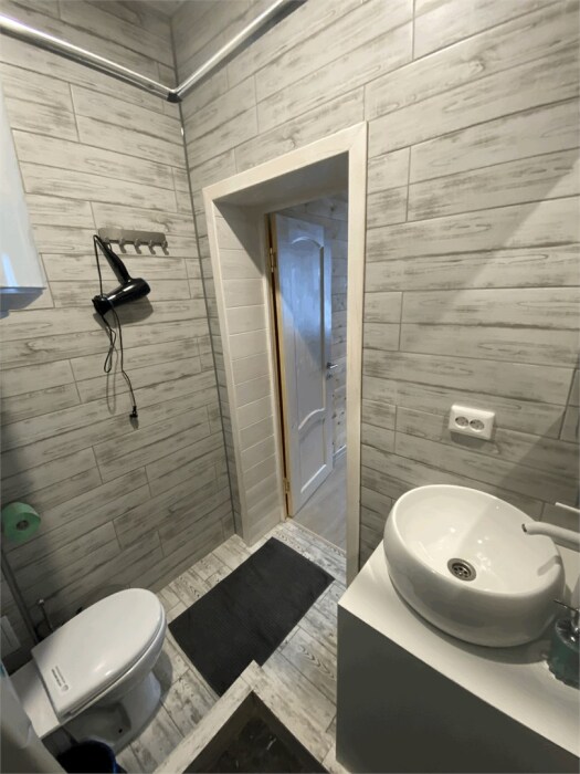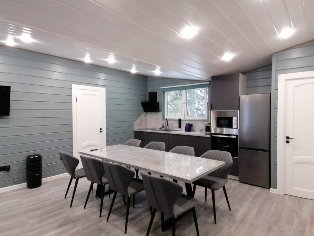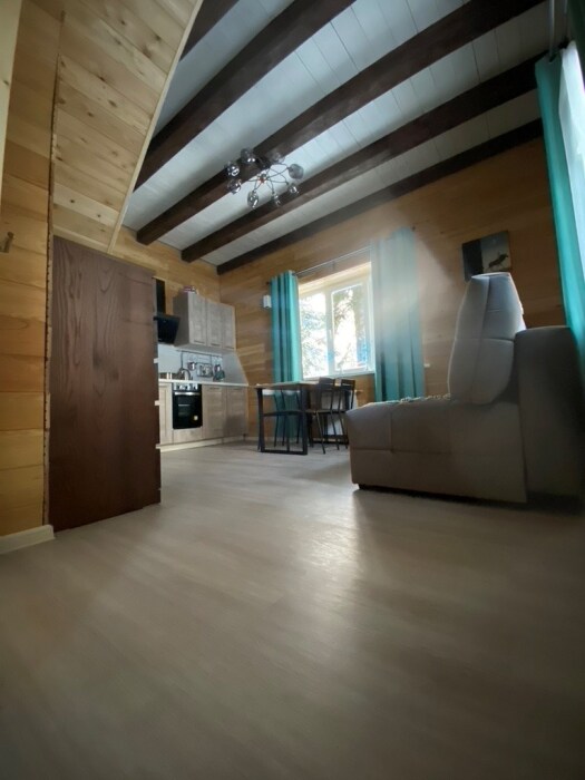 Новый двухэтажный дом. В нем 8 спальных мест, прихожая, гостиная-столовая, кухонная зона, 2 санузла. На втором этаже имеются 2 изолированные комнаты, балкон.