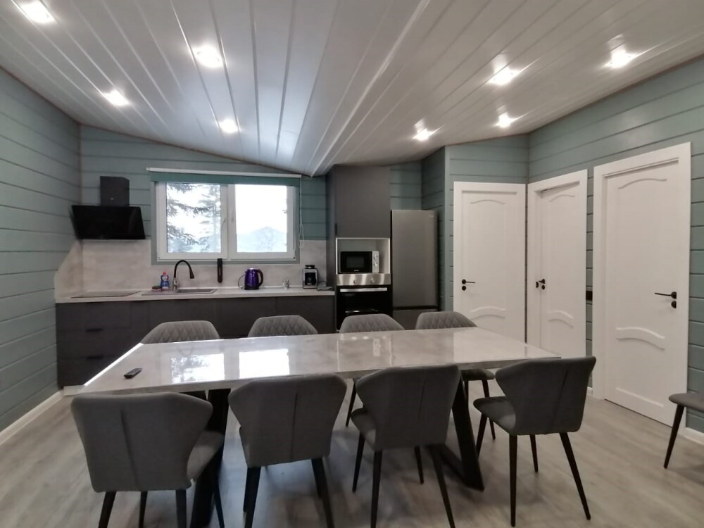 Весь номерной фонд оснащен полностью оборудованными кухонными зонами, что создает домашнюю атмосферу и уют. Все продумано до мелочей, махровое белье, сушилка для одежды, хранилище для инвентаря.