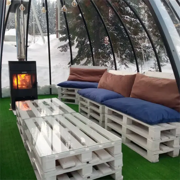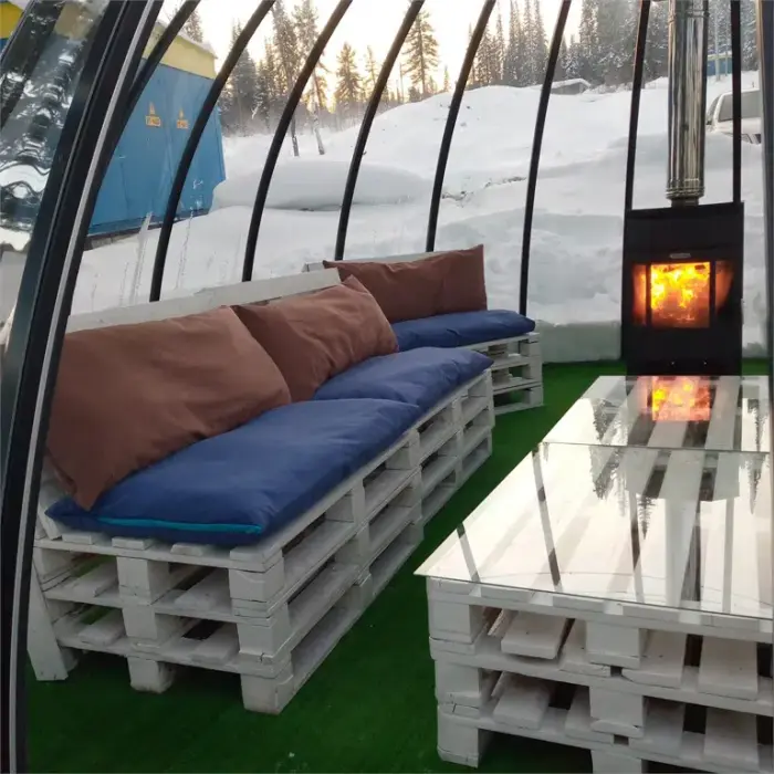 На территории комплекса гости могут посетить баню, купольную тёплую беседку. Самая большая тёплая десятка прям на горе. Вместимость до 15 человек. Рядом зона барбекю. Есть горячий чан под открытым небом. Бесплатный Wi-Fi предоставляется на всей территории.