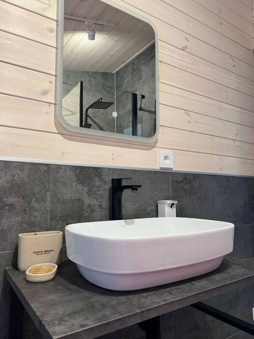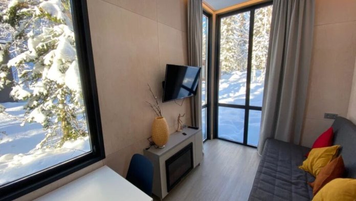Оснащен всем самым необходимым для проживания, плюс добавили камин для уютного уюта и зимней атмосферы)