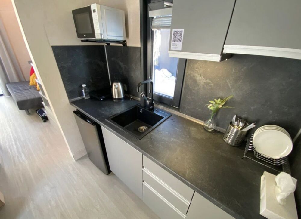 На территории расположено 3 домика вместимостью 3, 6, и 8 человек. В каждом доме дизайнерский интерьер, удобные спальные места, кухня оборудована всем необходимым для приготовления пищи, санузел с душевой кабиной.