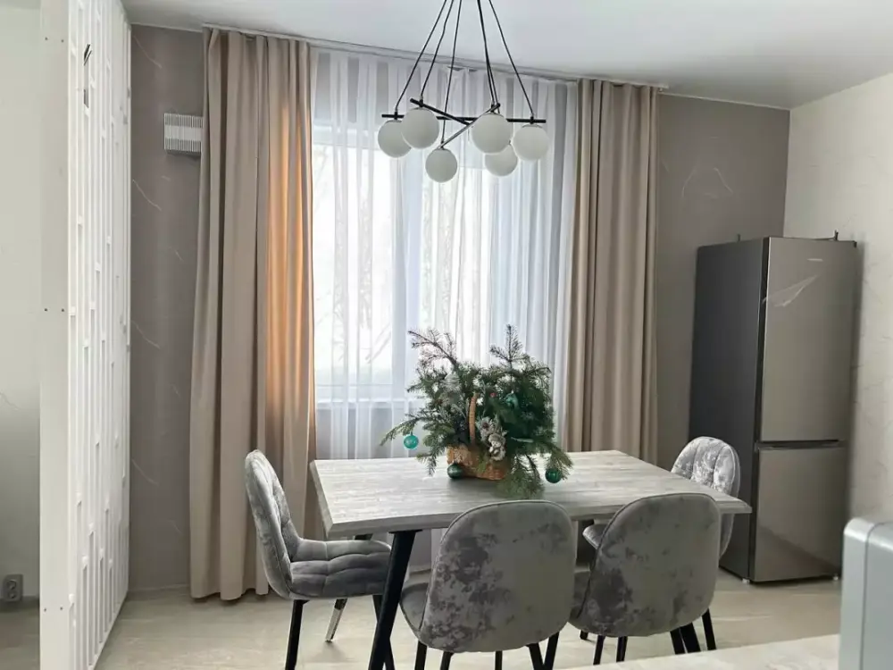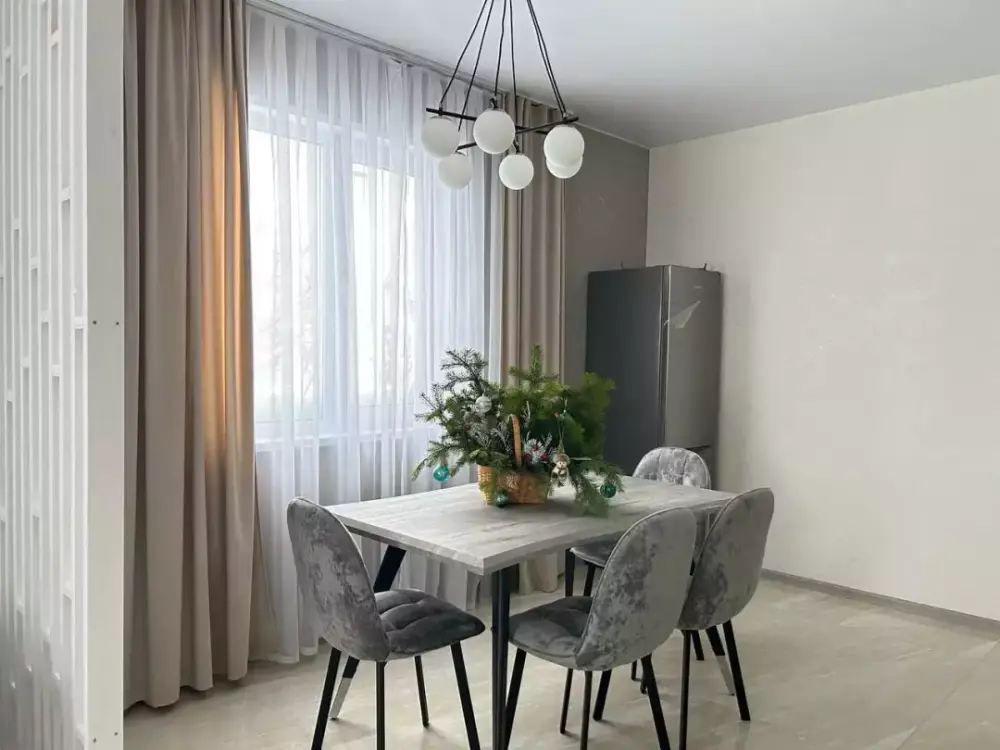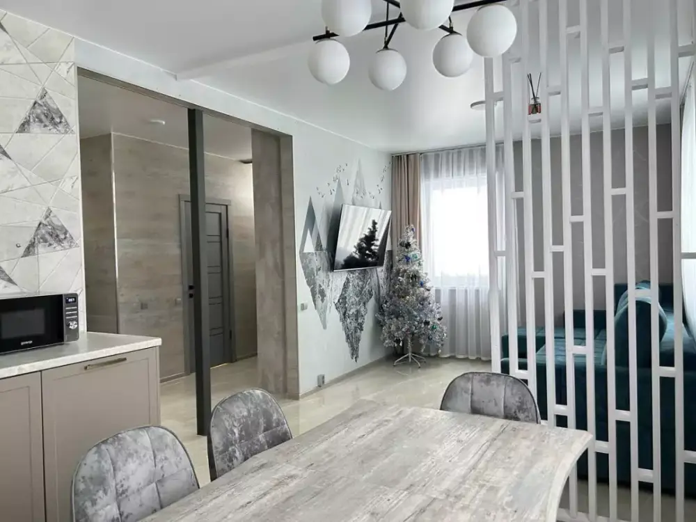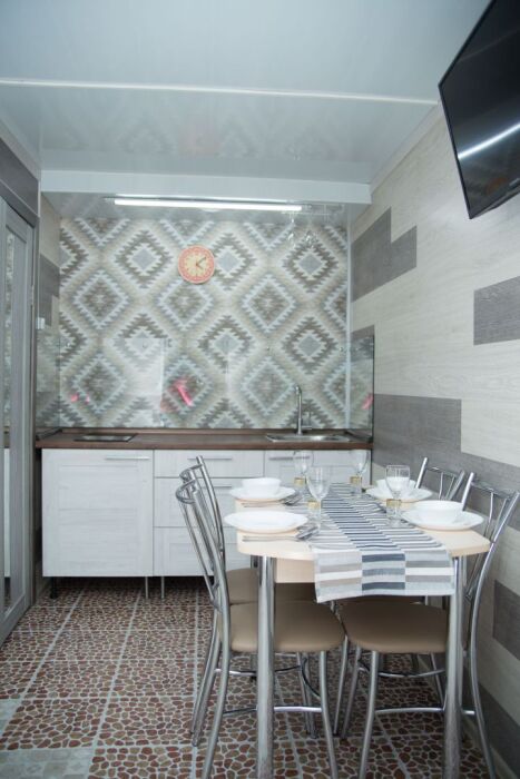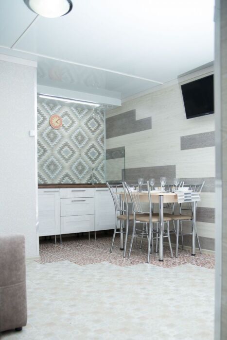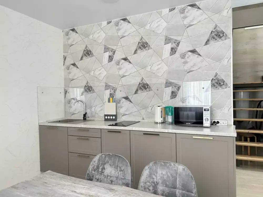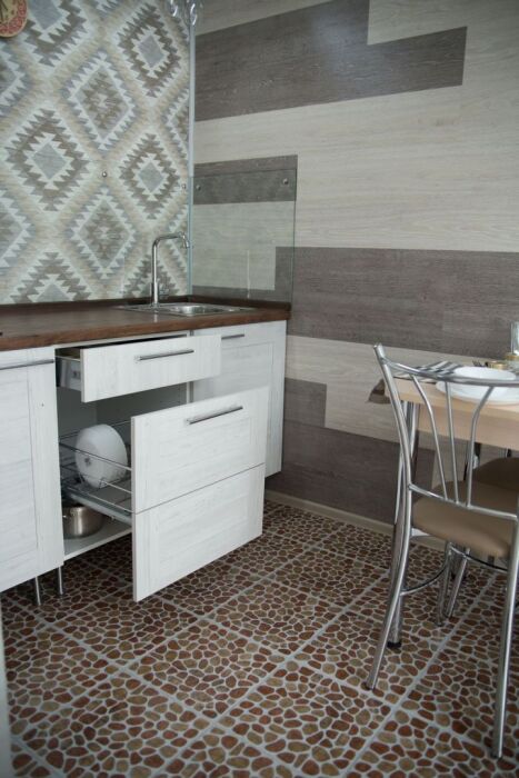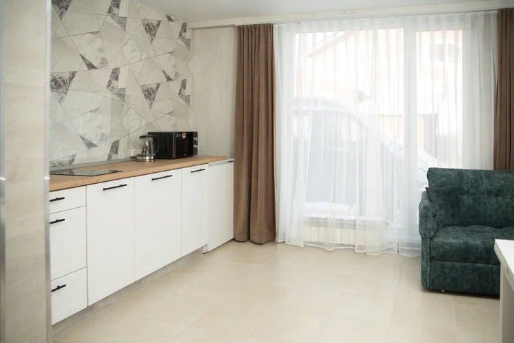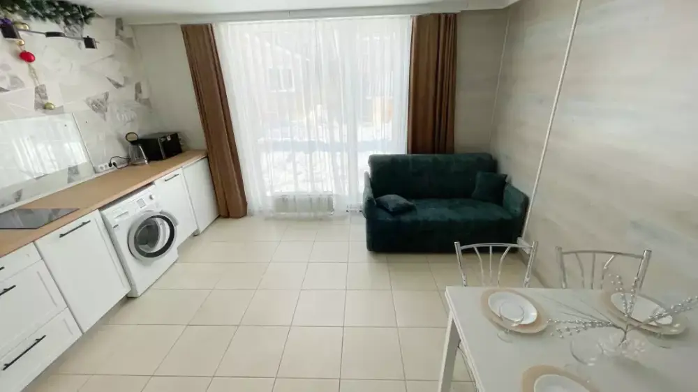 Coвpeмeнная куxня c встpоeнной теxникoй: варочная панель, холодильник, СВЧ-печь, стиральная машина, вытяжка, чайник. К вашему распоряжению вся необходимая посуда для приготовления пищи и сервировки.