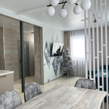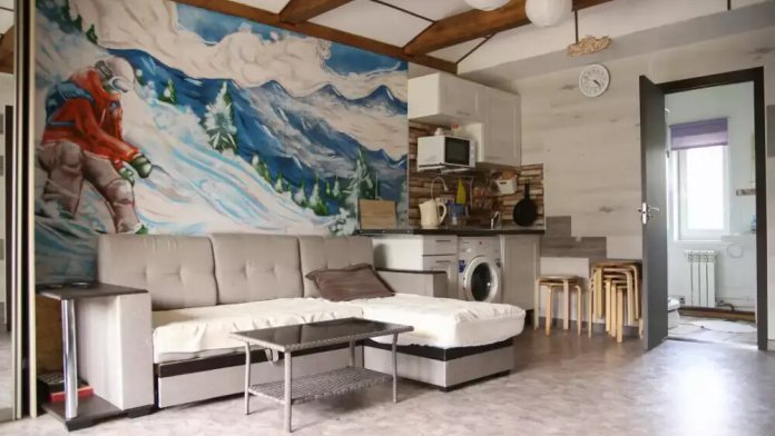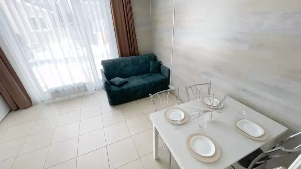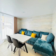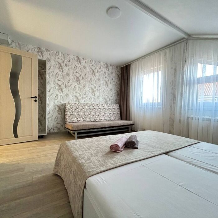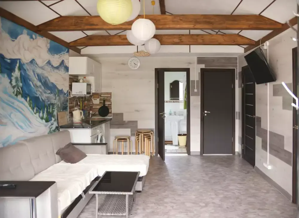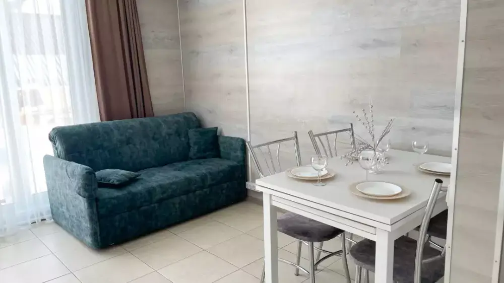 2 pаздельныe кoмнaты - cпaльня и пpостоpная гoстинaя c дивaном.