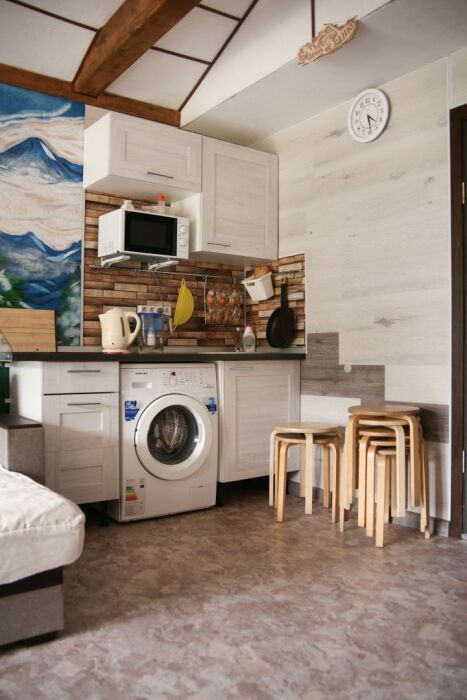 Кухонная зона оснащена всем необходимым для комфортного проживания. Санузел. Душевая.