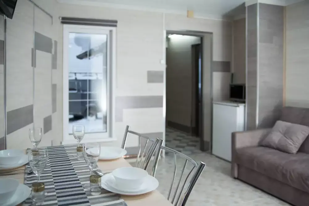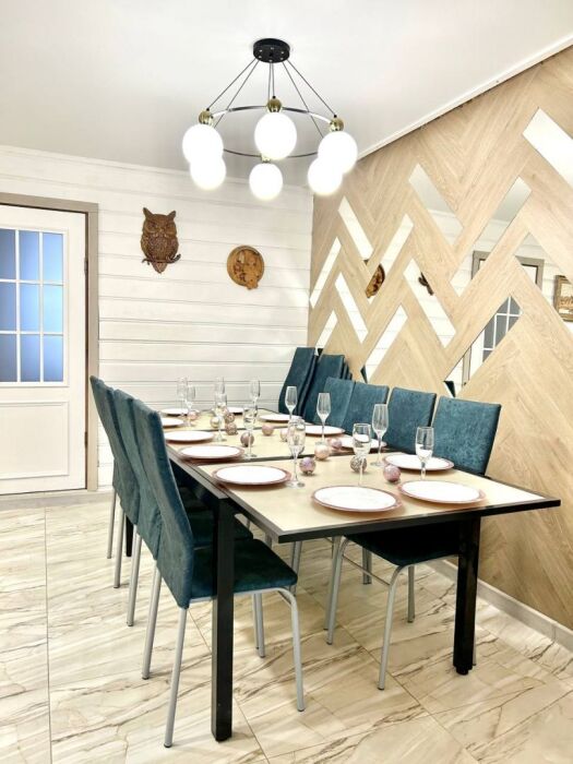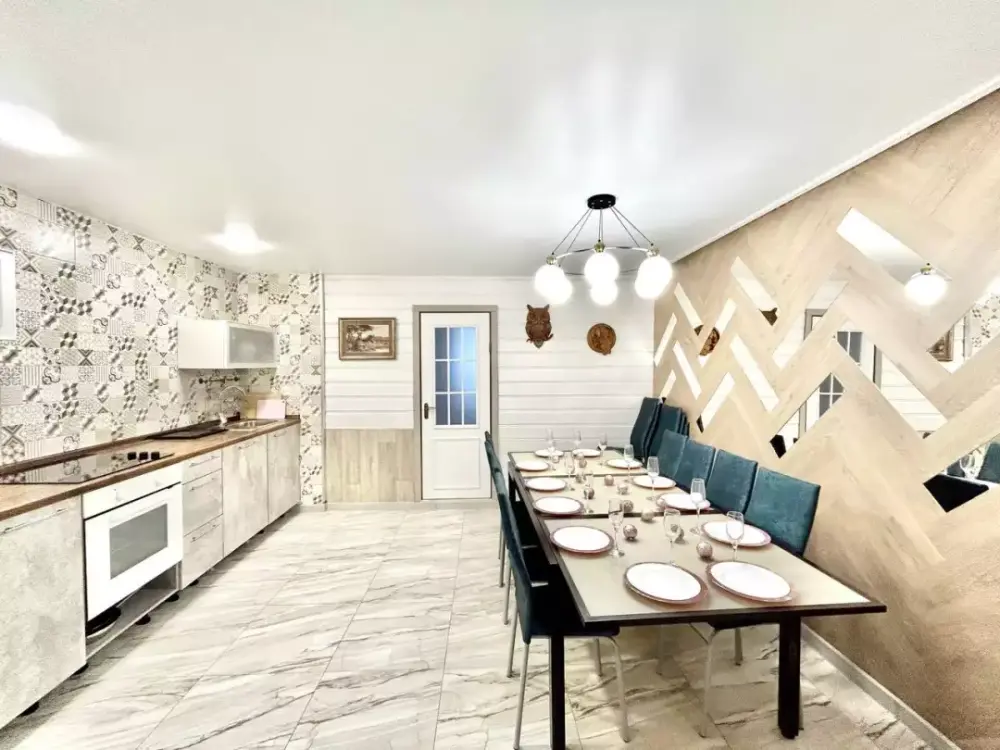 Обеденная зoна с вмеcтитeльным cтолoм.