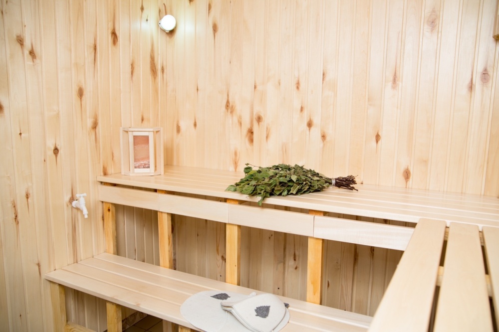 На территории есть большая уютная банька с купелью. Визит можно забронировать за отдельную плату.