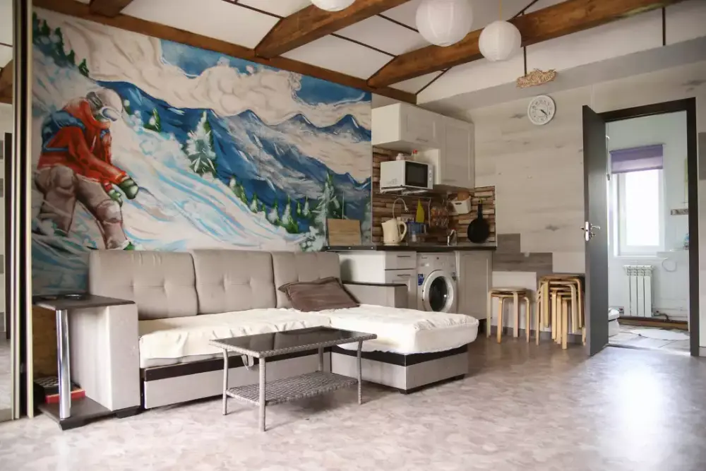На территории есть новая жаркая банька с ледяной купелью. К услугам гостей мангальная зона, парковка, места для хранения лыж. Закрытая территория с беседками, барбекю. А всего в 20 пеших минутах или 5 минутах на авто - подъемники, трассы и развлечения горнолыжного курорта.