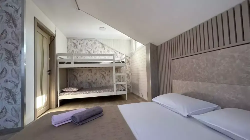 Четыре спальни - в каждой двуспальная кровать, двух уровненные кровати, диваны и односпальные, Смарт ТV. Санузел.