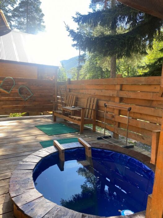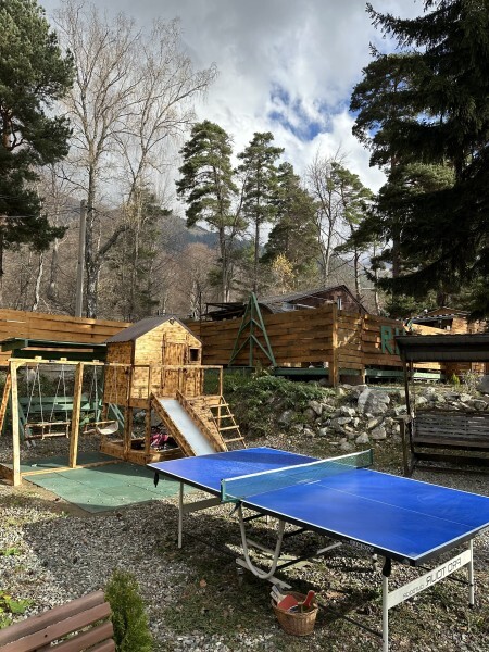 На территории открытые беседки, детская площадка. Дровяная баня с ледяной купелью (за дополнительную плату).