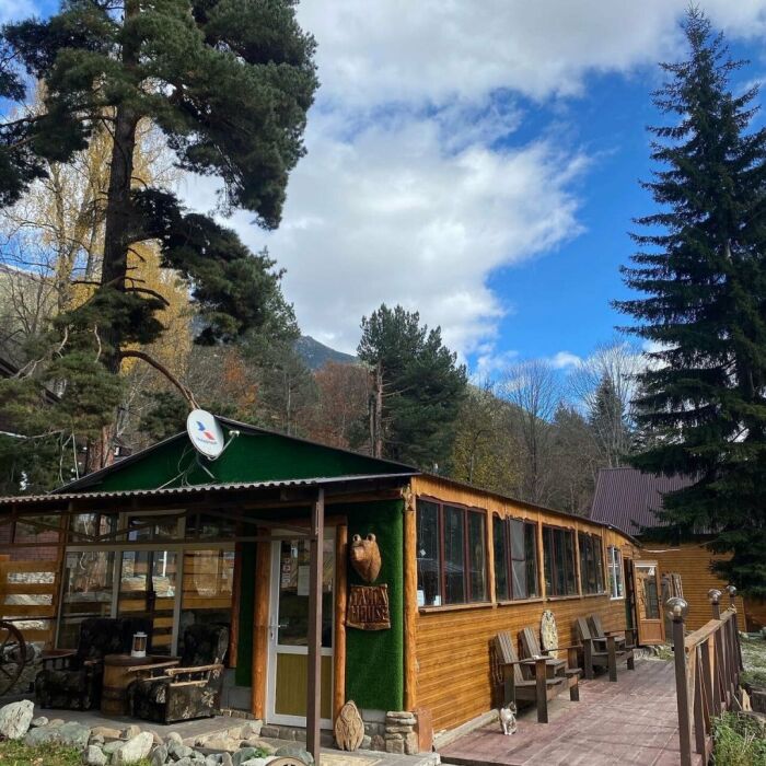 База отдыха «Тайга-House» расположена в 1,5 км от въезда в пос. Архыз и 10 км от горно-лыжнолыжного курорта «Романтик».