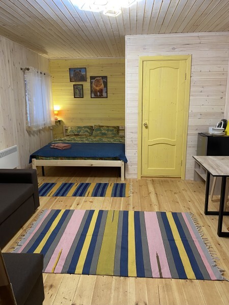 Номера категории Стандарт (Берлога 3 или Берлога 4). Располагаются на 1 этаже двухэтажного дома. У номера отдельный вход, своя собственная веранда с диваном и столиком. В номере двухспальная кровать, большой раскладной диван, телевизор, небольшой холодильник, электрочайник. Постельное белье и полотенца для лица предоставляются. Банные полотенца по запросу. Санузел: душ, туалет, горячая вода бойлер 100л. Отопление электрическое.