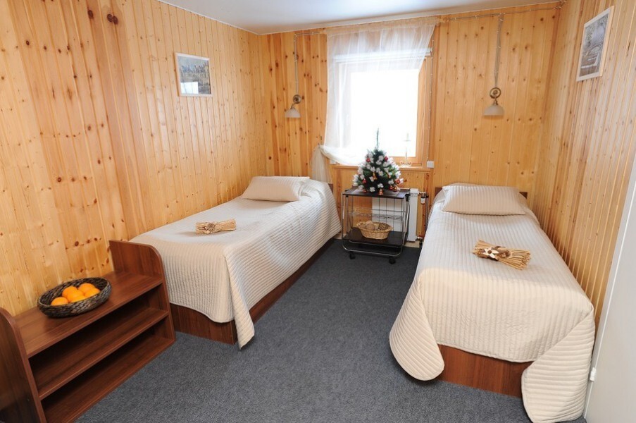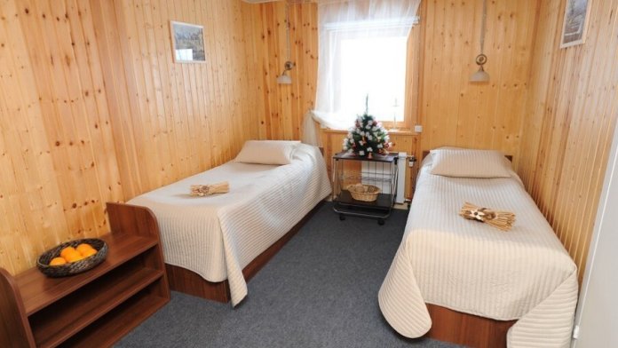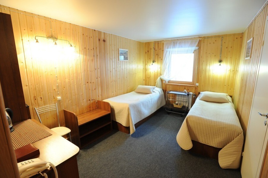 Гостиница курорта расположена на 2-ом этаже административного здания Reception. Всего в гостинице 7 номеров: категория «стандарт» 5 номеров, категория «комфорт» 2 номера. Все номера рассчитаны на 2 человек, дополнительные места не предусмотрены. Номера гостиницы выполнены в спокойном лаконичном стиле скандинавского минимализма, удобные и практичные. Общая площадь от 16 до 19 кв.м в зависимости от номера, из них 3 кв.м - санузел. Wi-Fi для проживающих - бесплатно. На первом этаже на террасе – зона для курения ( в номерах курить запрещено). Парковка для автомобиля – бесплатно. На прилегающей территории, для гостей гостиницы имеется барбекю-площадка с уличной мебелью и мангалами (бесплатно). Гардероб на 1 этаже гостиницы для хранения горнолыжного инвентаря и снаряжения (бесплатно)