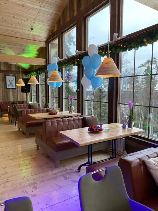 • На территории комплекса работают 3 ресторана "Bellagio", "Panorama", "Горка-бар", кафе "Арктика".