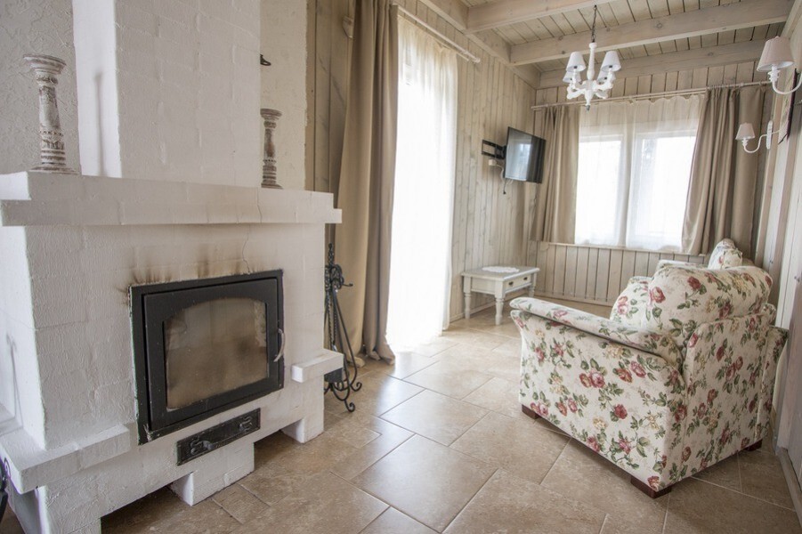 Особенностью коттеджей Люкс является наличие сауны и камина.