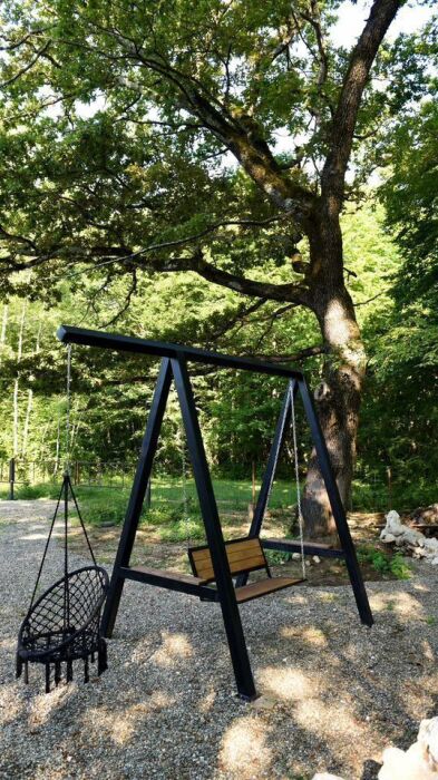 - Просторная беседка 2,5×5 м: стол, стулья, подвесные кресла;