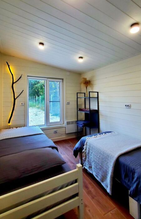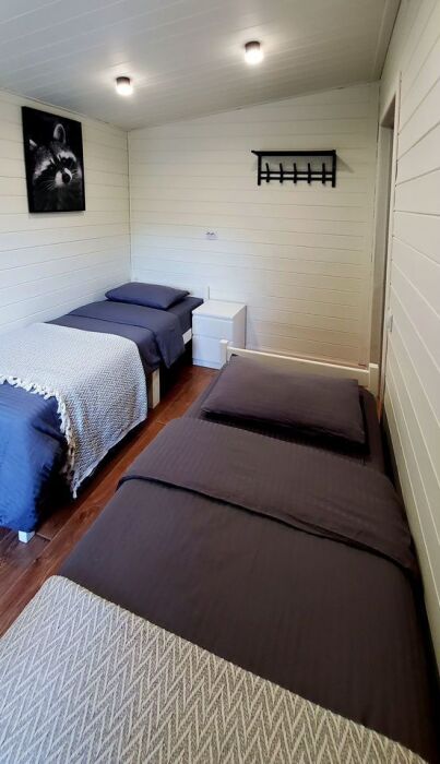 - Размещение: две раздельные кровати + одна общая во второй комнате;
