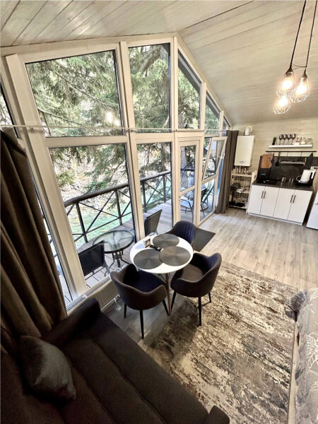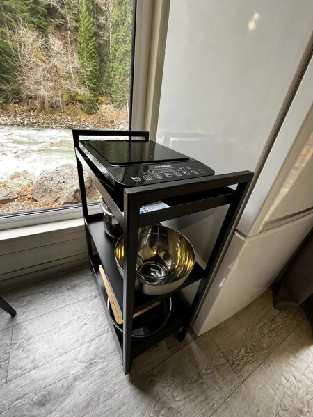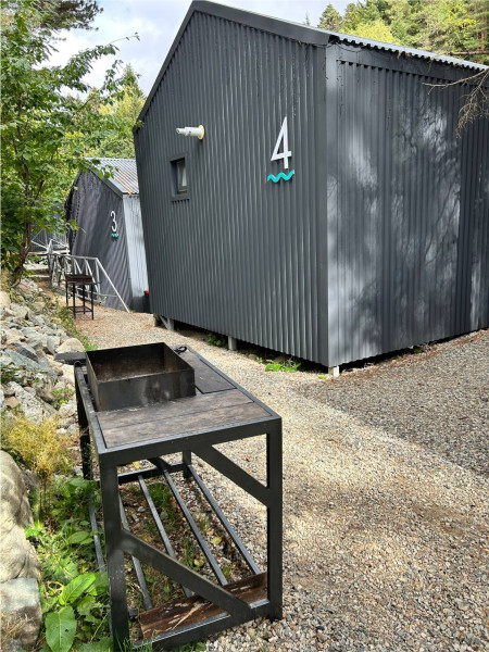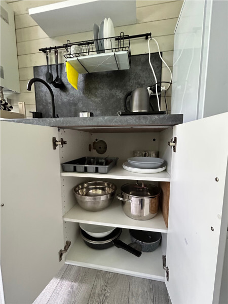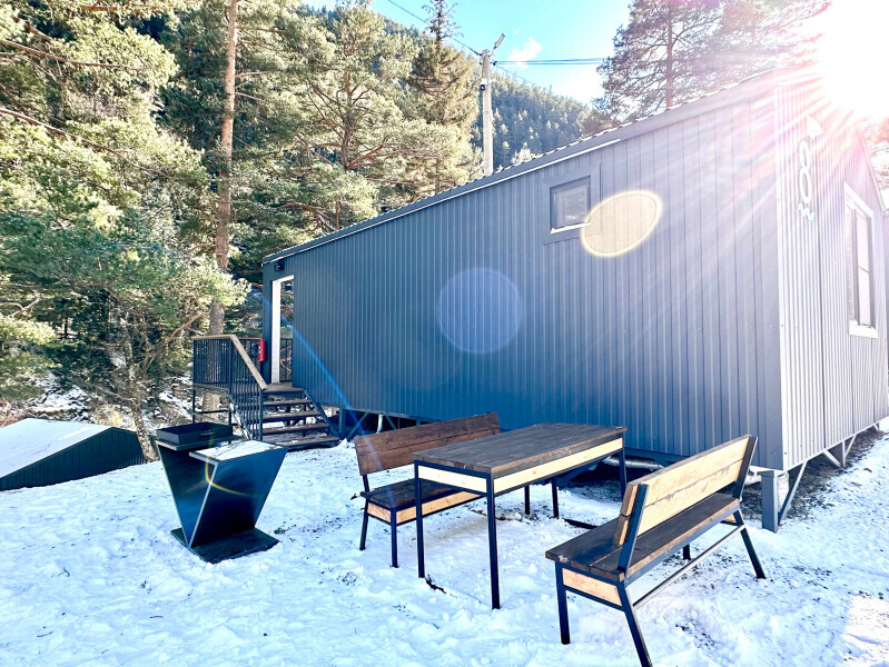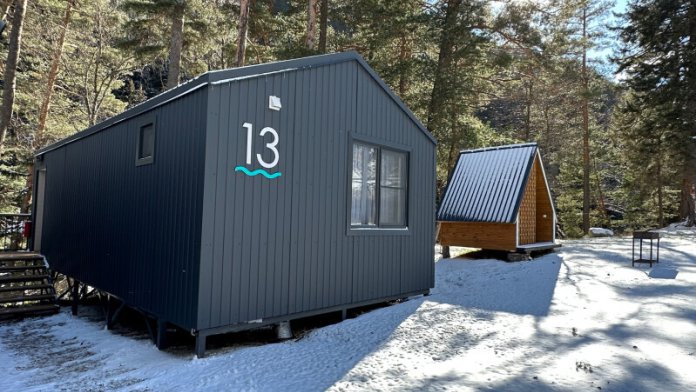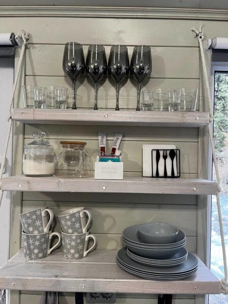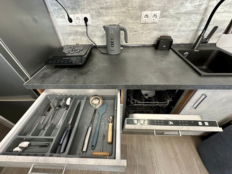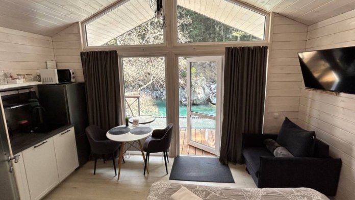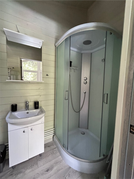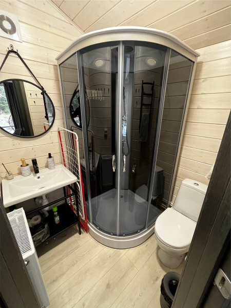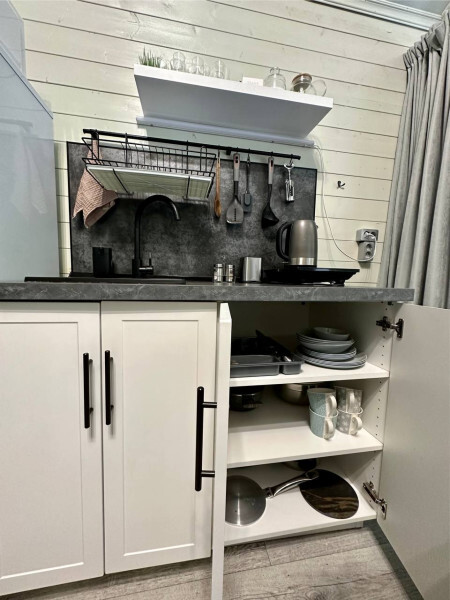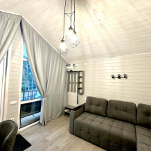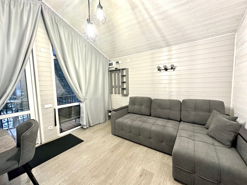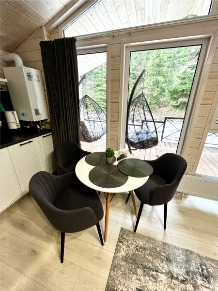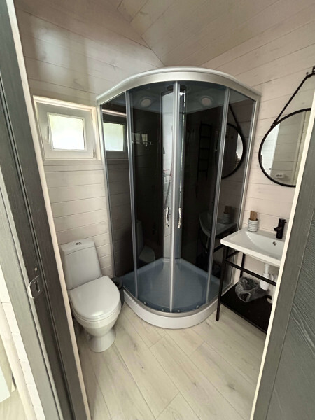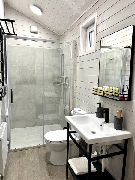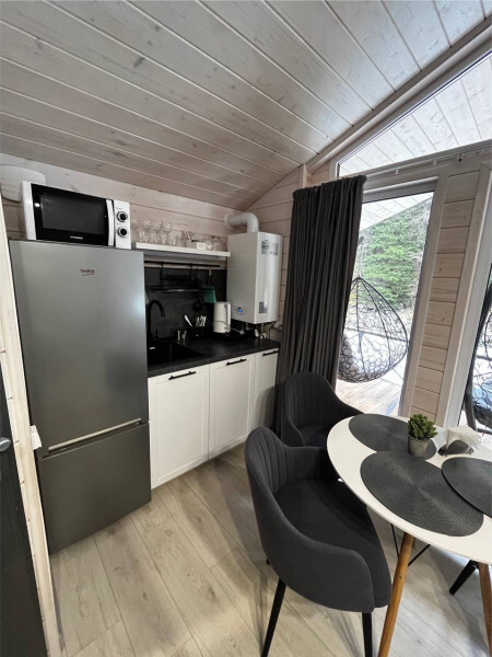 колонкой «Алиса»; Smart TV; санузлом, с большой душевой кабиной, бойлером, феном, полотенцами, банными принадлежностями и средствами личной гигиены; кухней, холодильником, микроволновой печью, электроплитой, чайником, посудой; чайной станцией и питьевой водой из артезианской скважины; собственной мангальной зоной; шампуры, решетки для мангала (у администратора по запросу бесплатно).