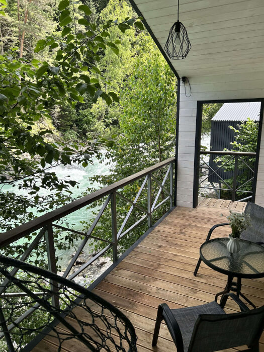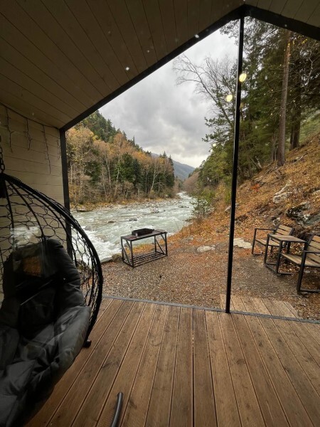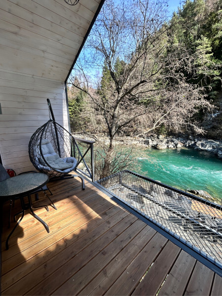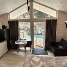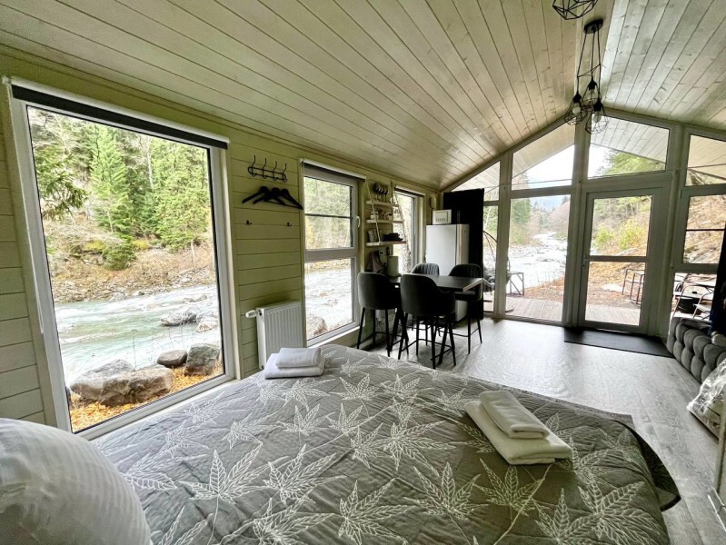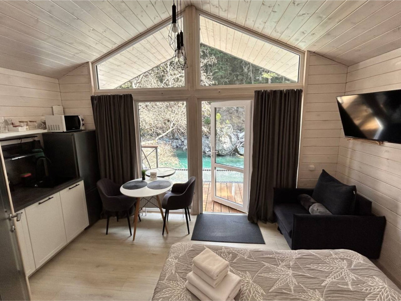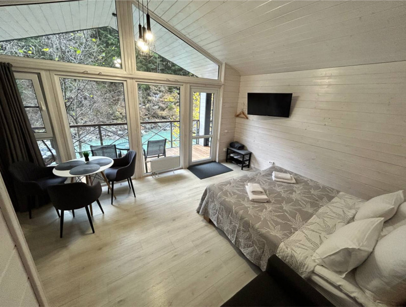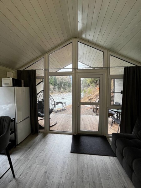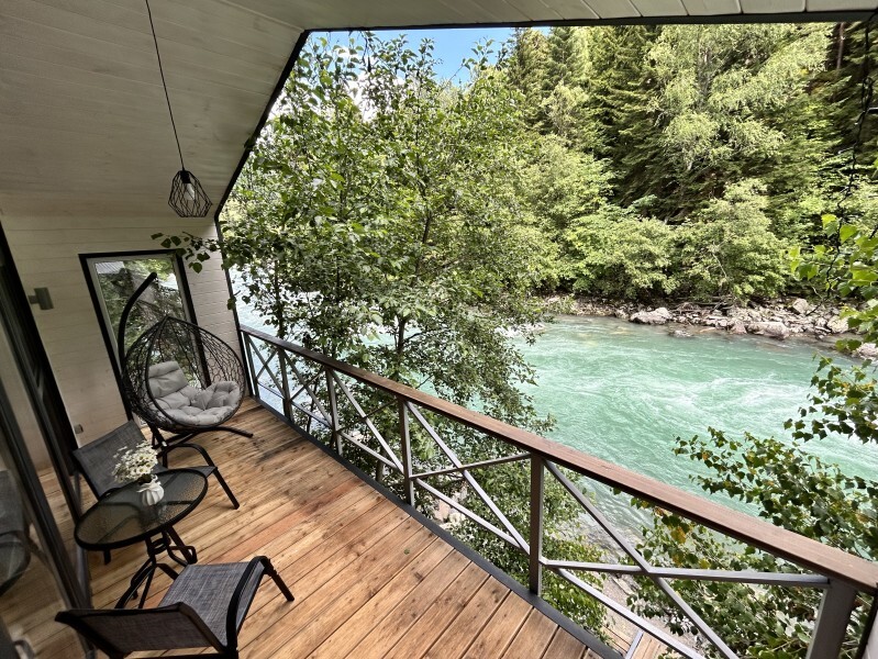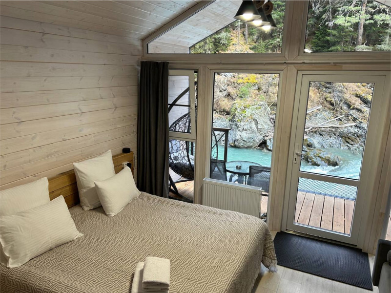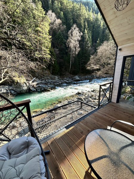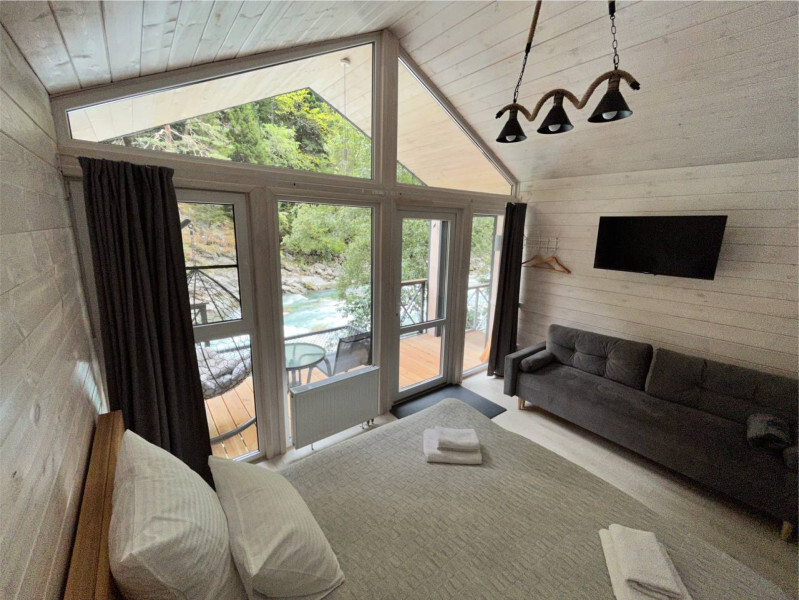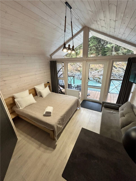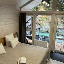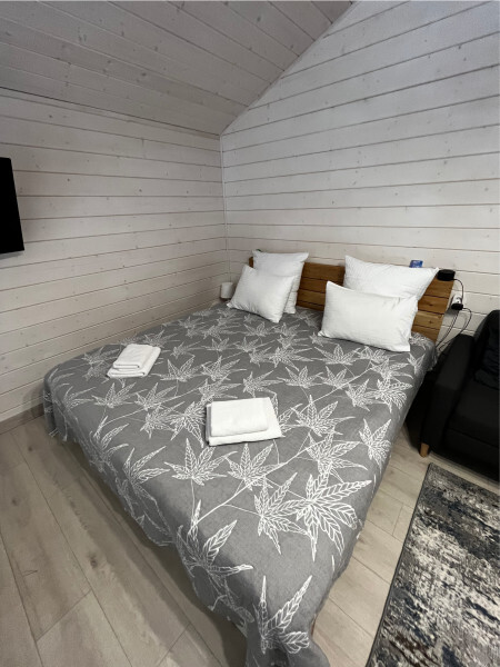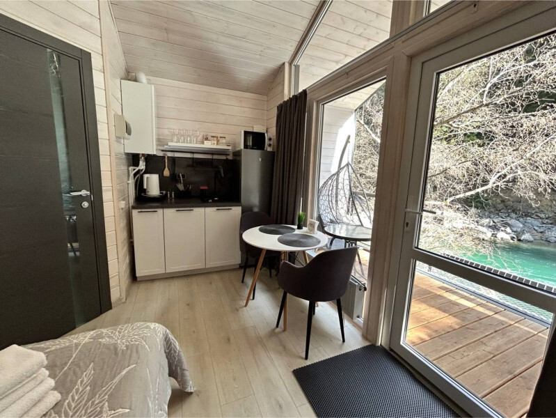 Дом 2-комнатный оснащен: крытой террасой с видом на реку; 2-спальной кроватью с хорошим ортопедическим матрасом (160х200); раскладным диваном (160х200); качественным постельным бельем, подушками и одеялом;