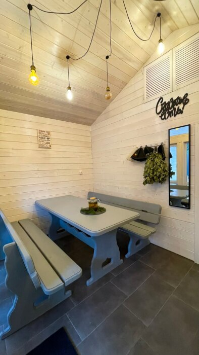 - Баню 27м2, включает в себя: зону отдыха, чан с водой, душевая, телевизор, wi-fi, мини кухня, обливное ведро. В стоимость входит: шапочки для бани, чай, полотенца, фен, wi-fi, smart TV, cтанция «Алиса», тапочки и гигиенические принадлежности (гель для душа, шампунь, бальзам для волос).