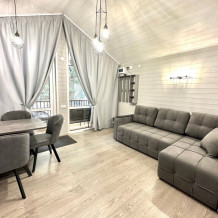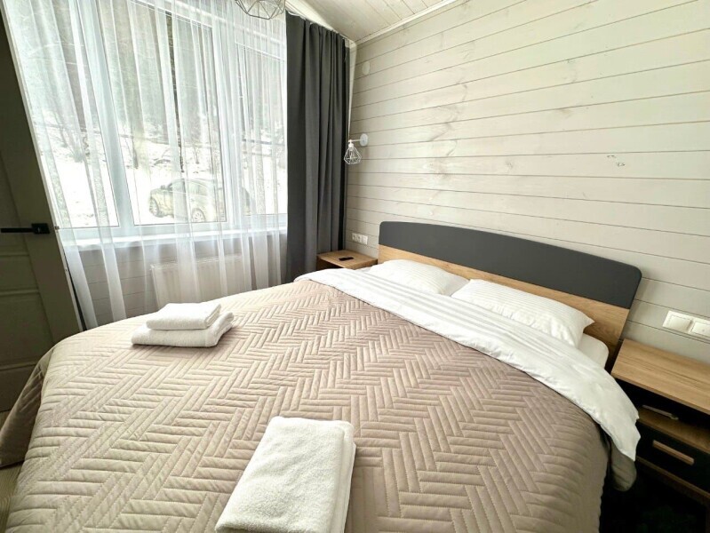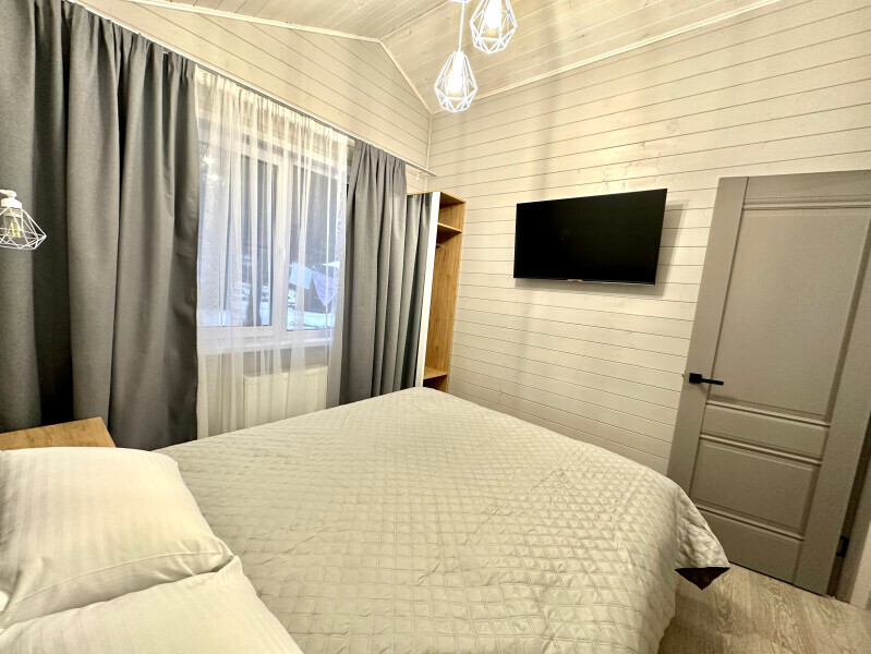 Дом 3-комнатный оснащен: 2-спальной кроватью с хорошим ортопедическим матрасом (160х200); раскладным диваном (160х200),раскладным диваном (140х200) качественным постельным бельем, подушками и одеялом; колонкой «Алиса»; Smart TV; 2 санузлами с полотенцами, банными принадлежностями и средствами личной гигиены кухней, 2 холодильниками, посудомоечной машиной, 2 микроволновыми печами, электроплитой,
