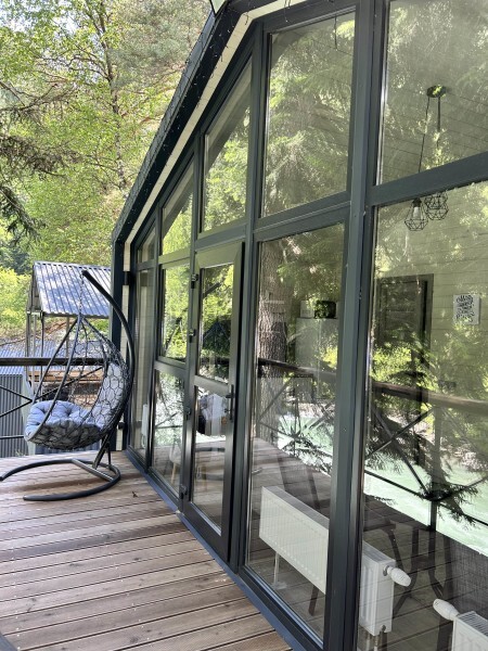 Дом оснащен: крытой террасой с видом на реку; гамаком над рекой; тёплым полом; посудомоечной машиной; 2-спальной кроватью с хорошим ортопедическим матрасом (180х200); раскладным креслом (70х200); качественным постельным бельем, подушками и одеялом; колонкой «Алисой»; санузлом с бойлером, феном, полотенцами, банными принадлежностями и средствами личной гигиены; кухней, холодильником, микроволновой печью, электроплитой, чайником, посудой; чайной станцией и питьевой водой из артезианской скважины; собственной мангальной зоной; шампуры, решетки для мангала (у администратора по запросу бесплатно).