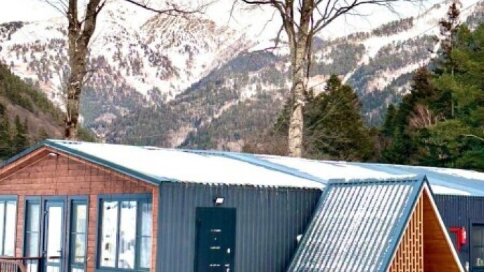 Данный дом имеет 2 части и 2 входа.