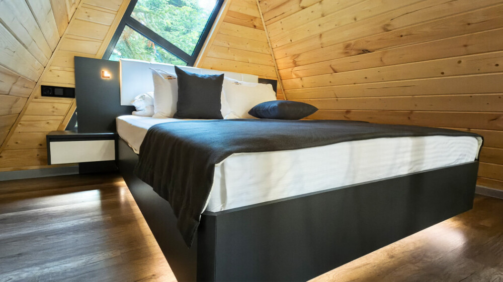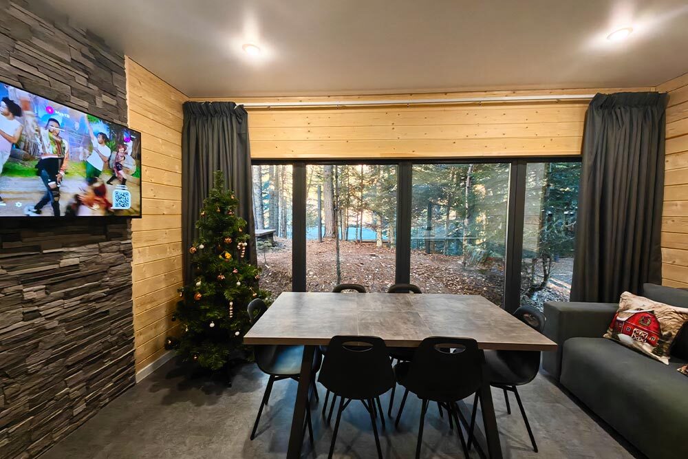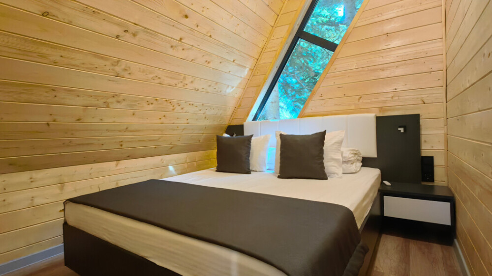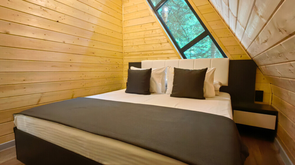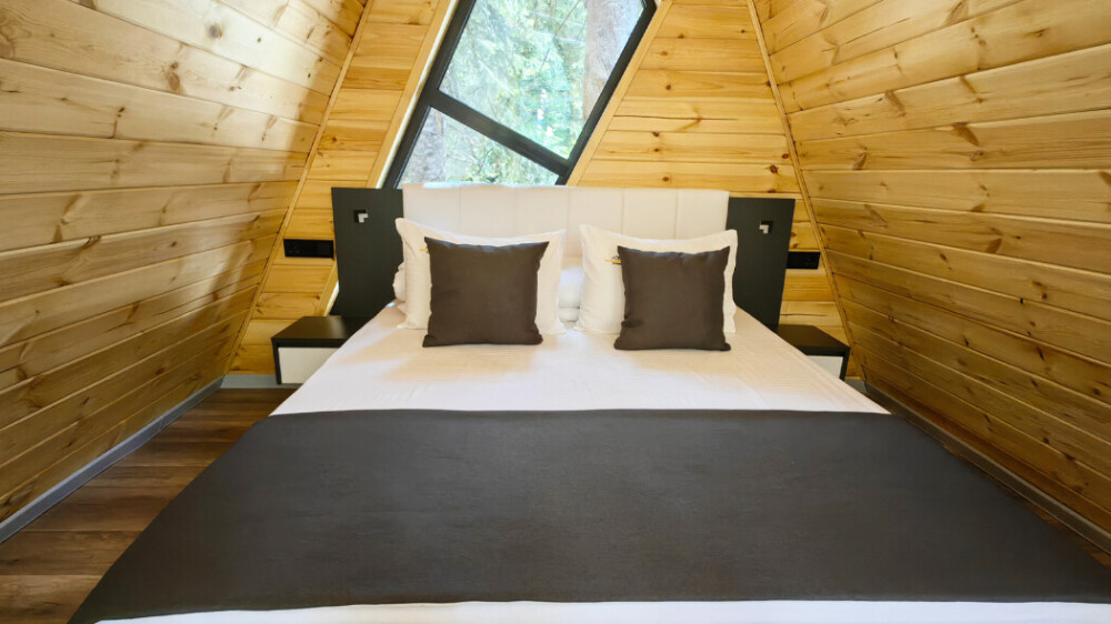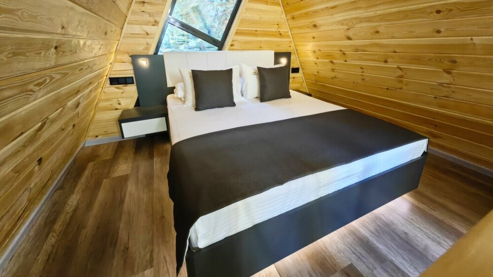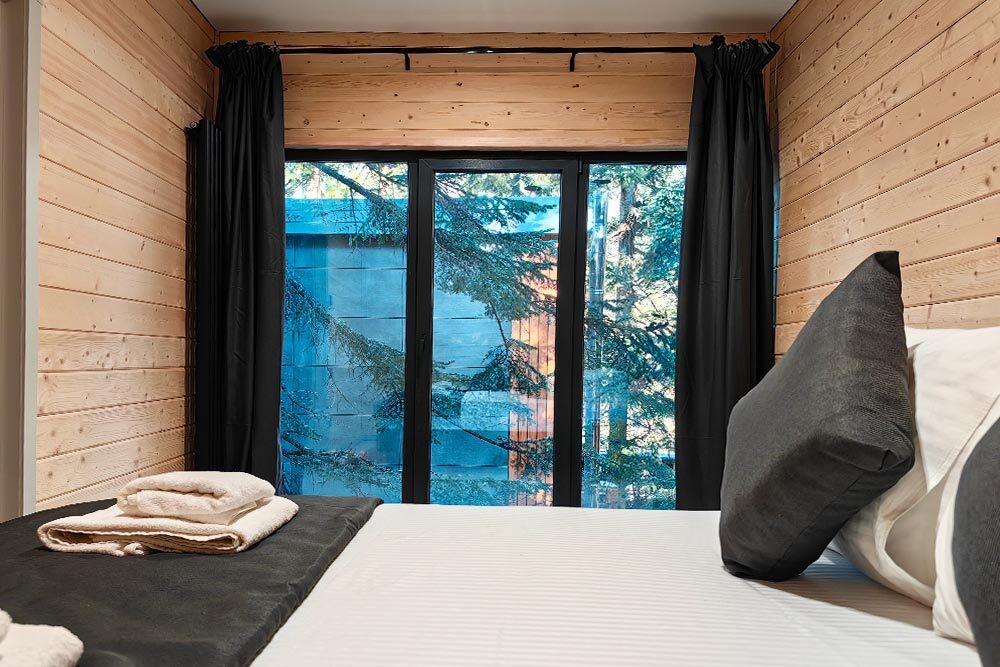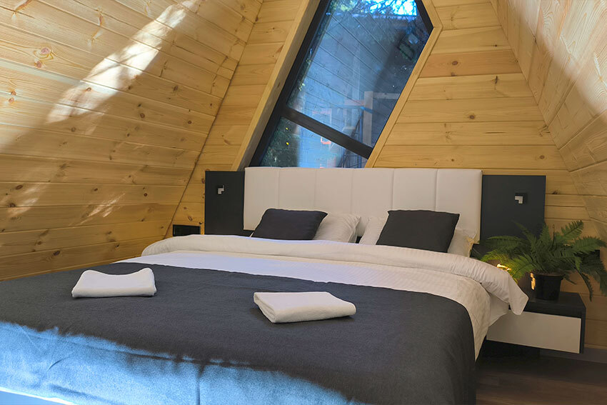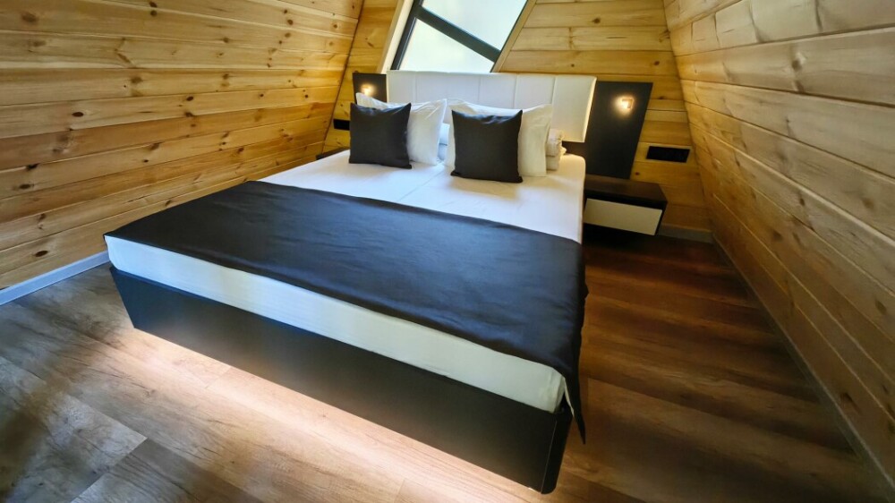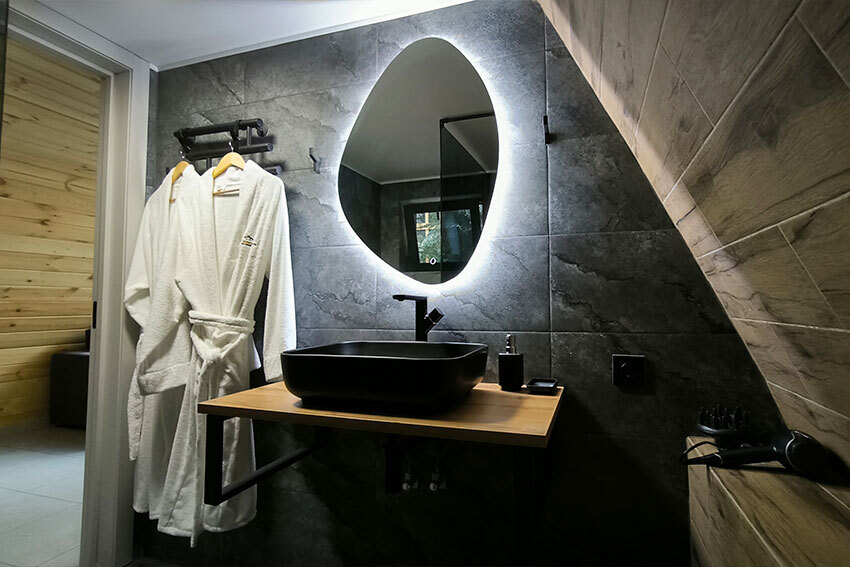 Оборудование домов: Смарт ТВ, Колонка Яндекс Алиса с элементами «умного дома», бесплатный Wi-Fi, полноценная кухня с необходимой утварью, посудомоечная машина, холодильник, микроволновка, плита, чайник, кондиционер, фен, розетки у кроватей, сушилка для белья. Постельное белье премиум-качества, ортопедические матрасы, гипоаллергенные подушки и одеяла, шторы на электрокарнизе. В каждом санузле гигиенический душ.