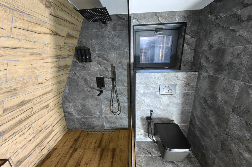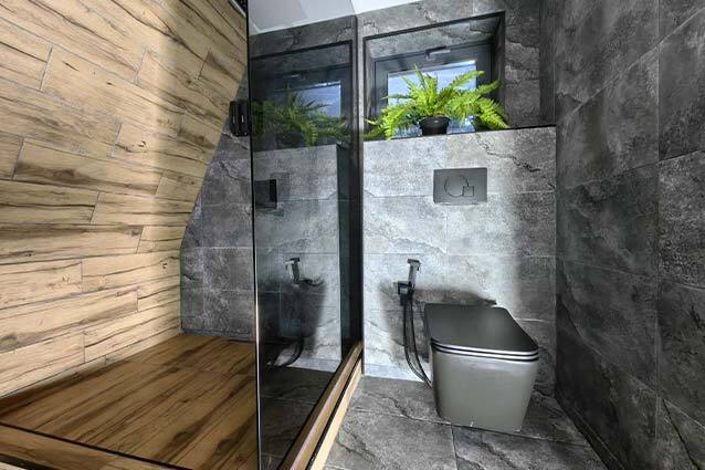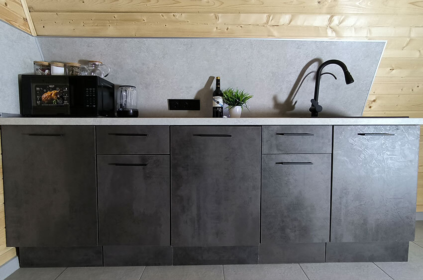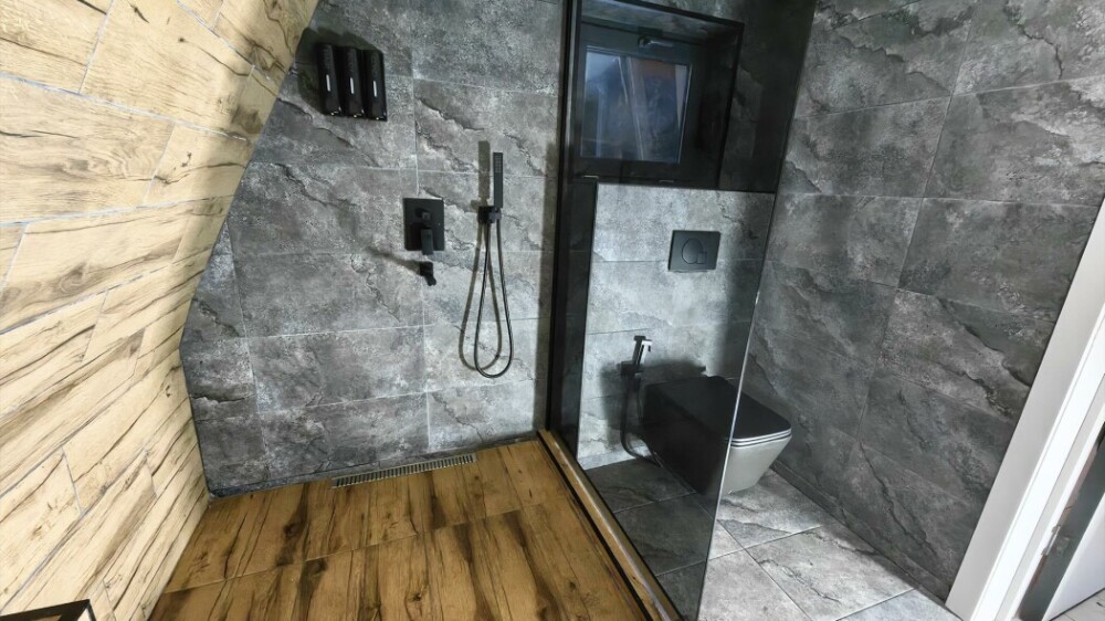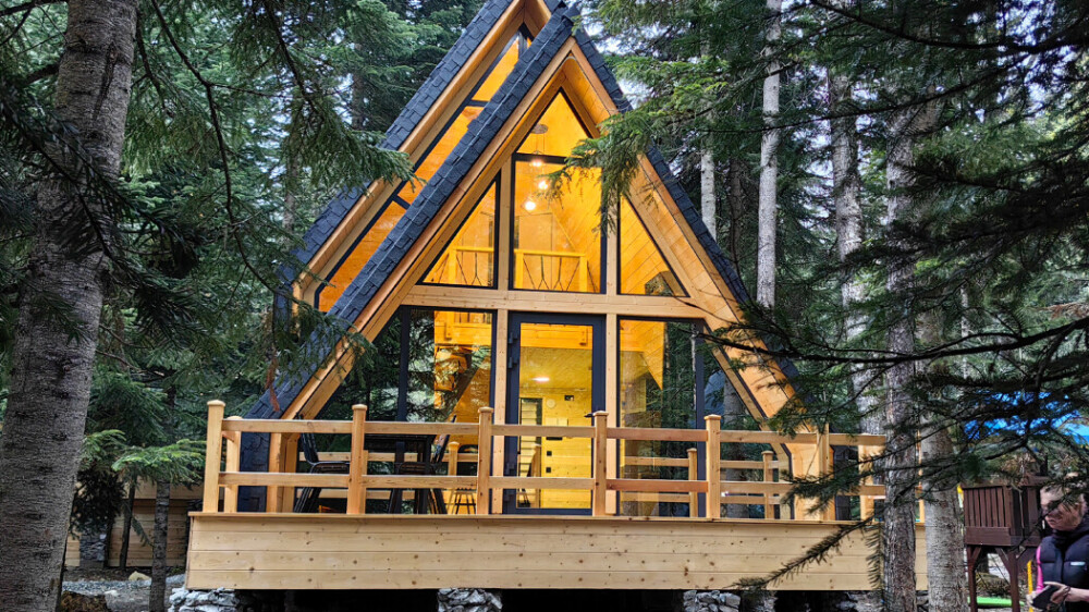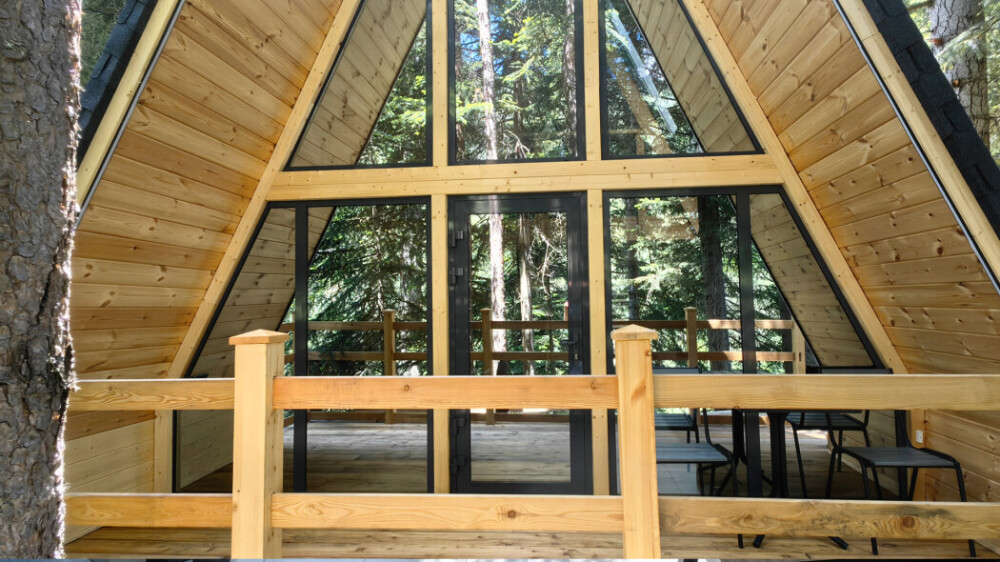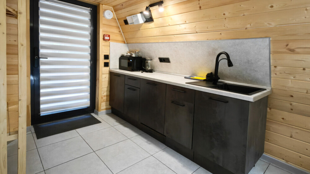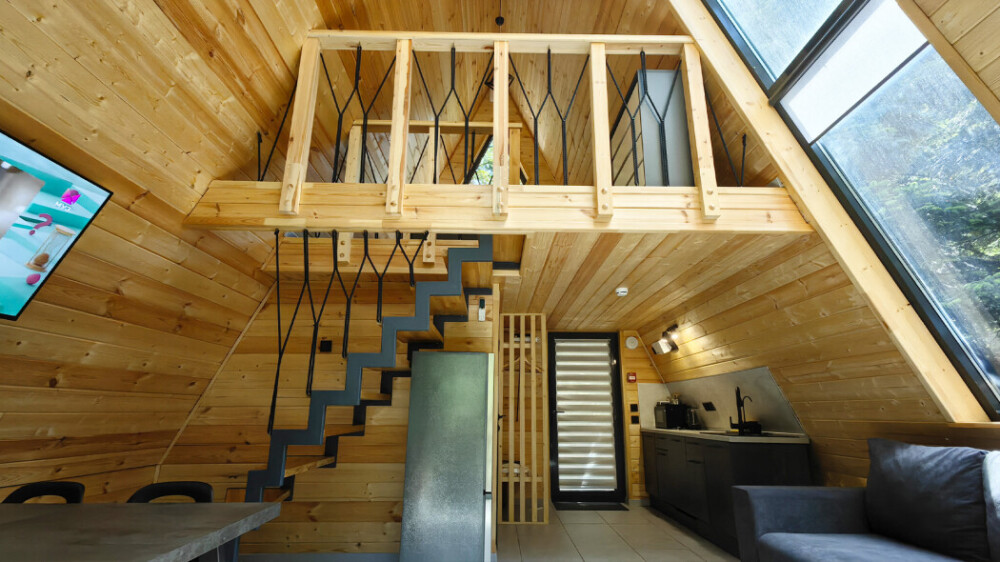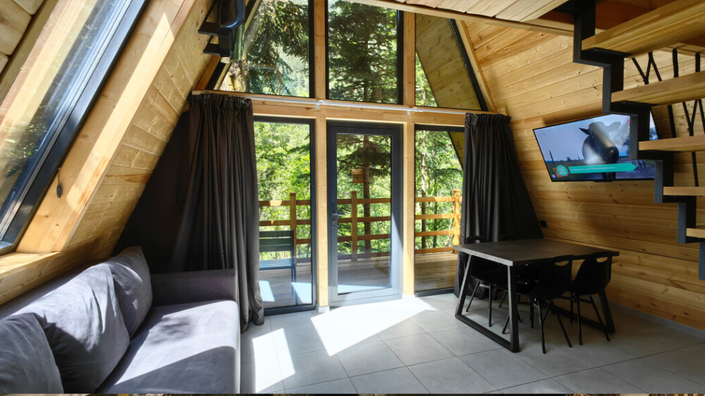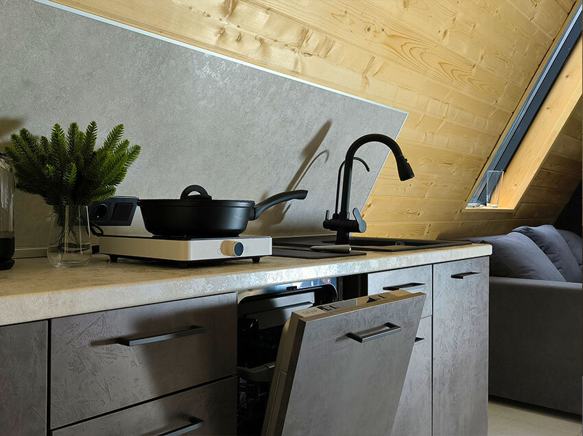 Домик с кухней и посудомоечной машиной. Панорамное остекление. Умный дом с Алисой. В санузле гигиенический душ. Подогреваемые полы. Магнитная зарядка для смартфонов у кроватей. Большая терраса с видом на горы.