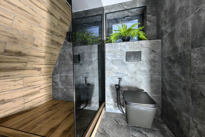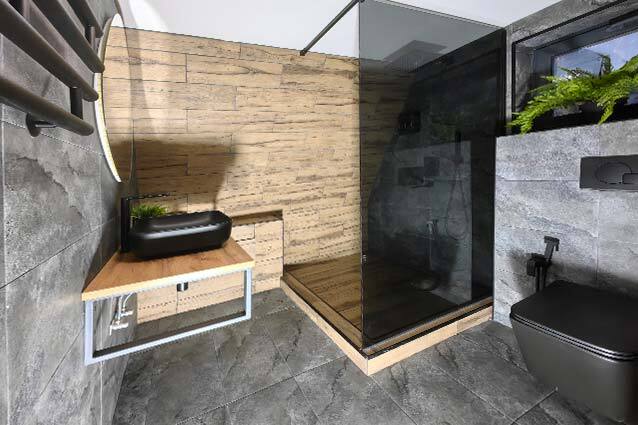 Дом Квадро 11 с панорамными окнами, балконом и эксплуатируемой кровлей, ванной в спальне.